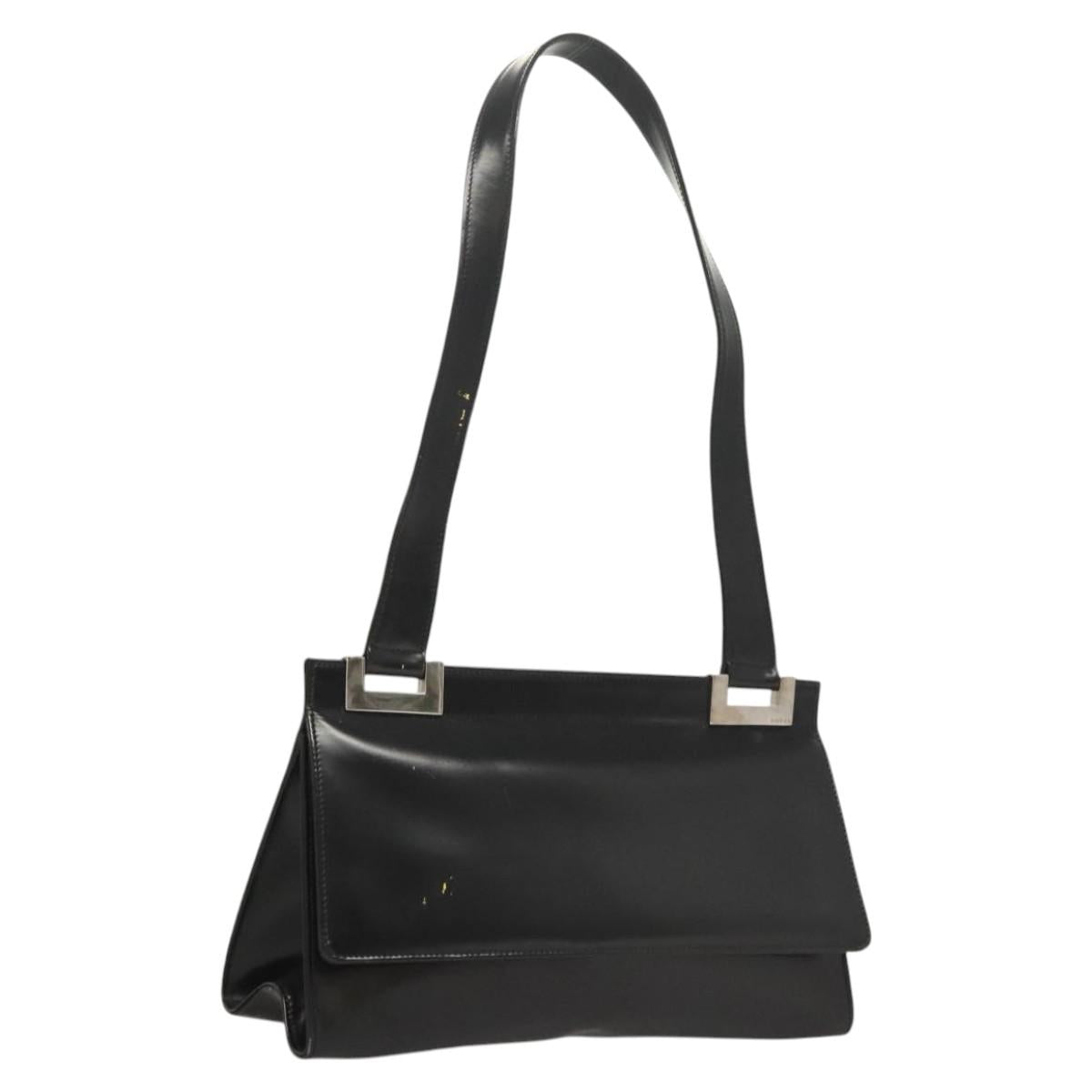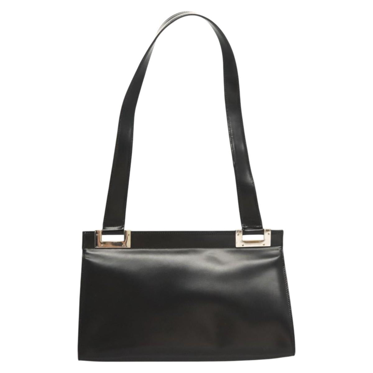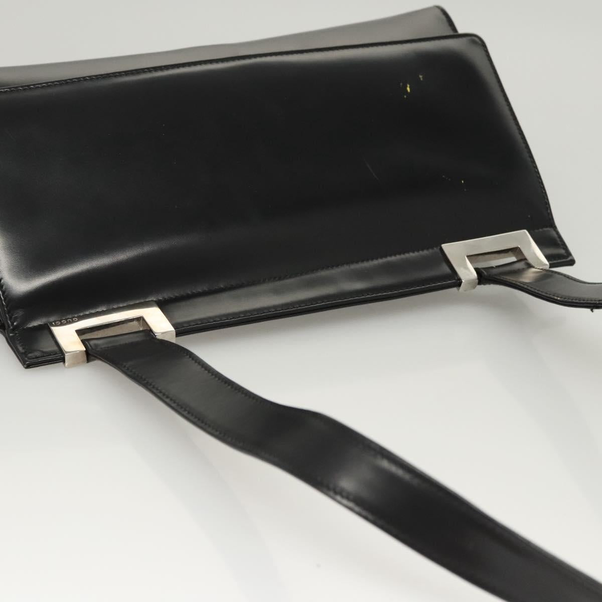 GUCCI Shoulder Bag Leather Black Silver Auth bs25488