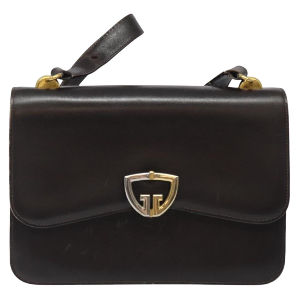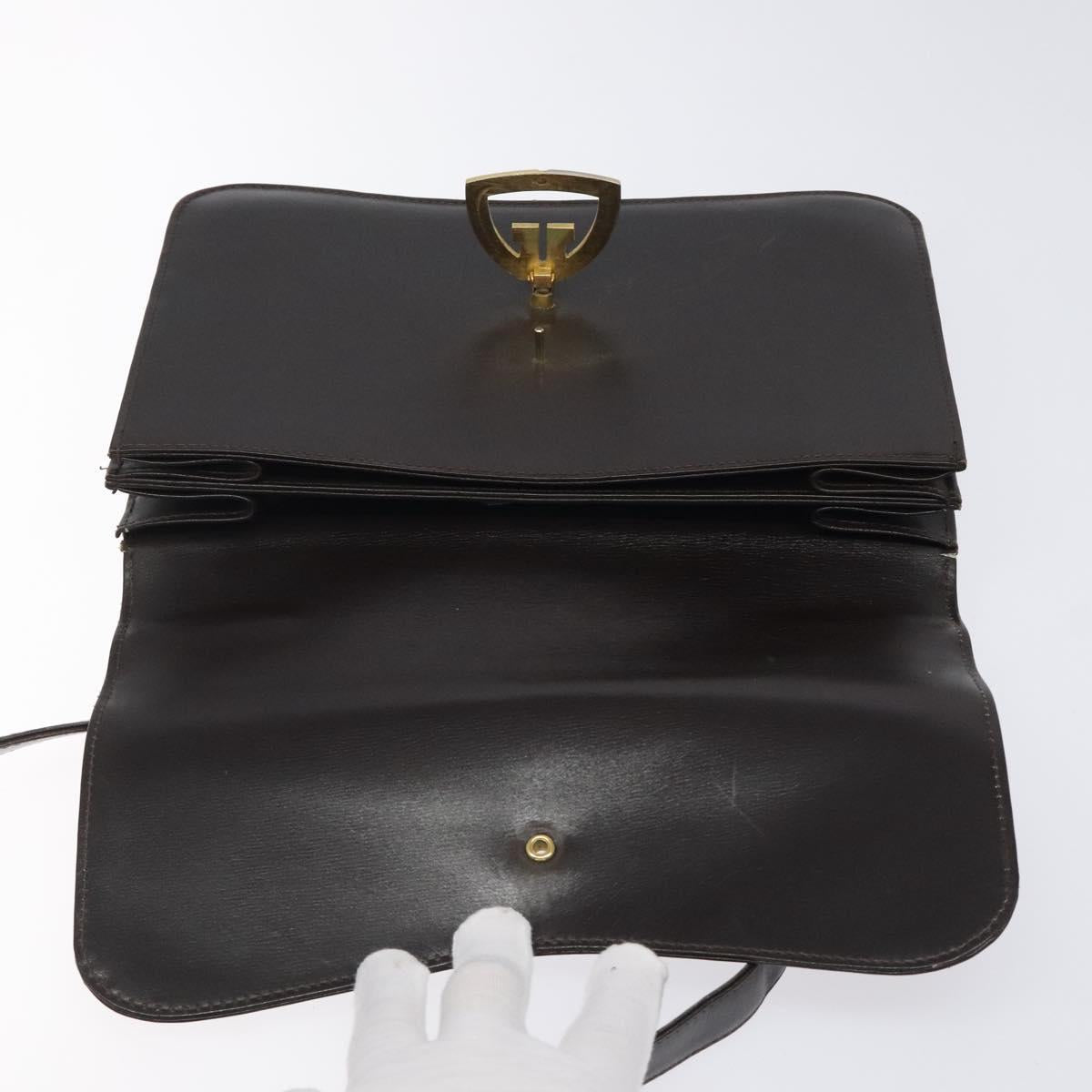 GUCCI Shoulder Bag Leather Brown Gold Auth 121613