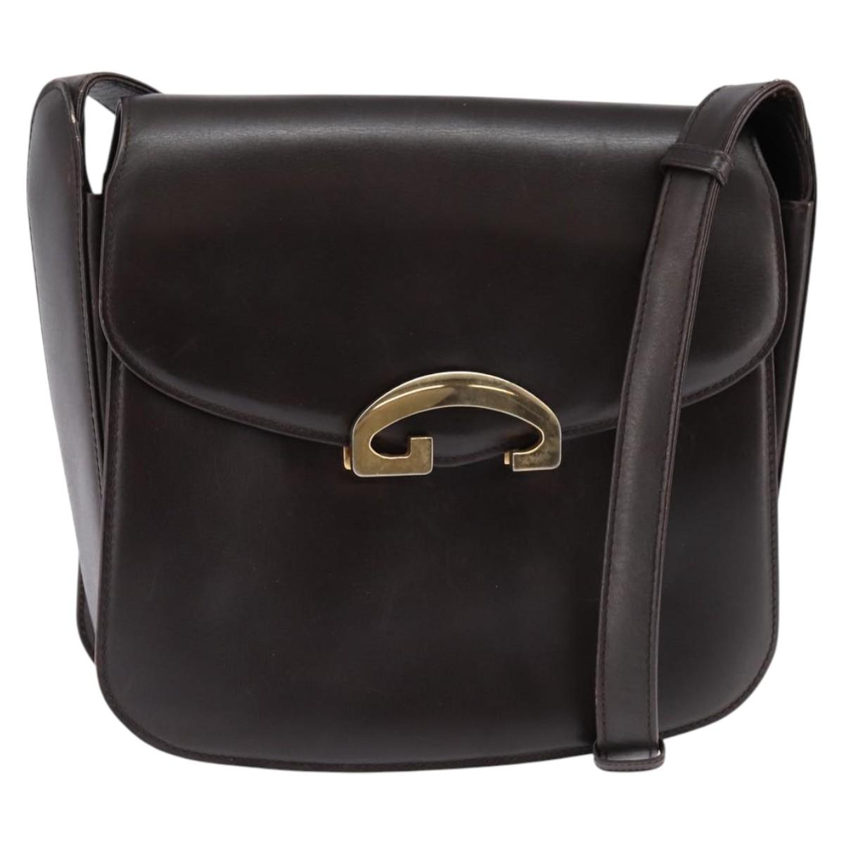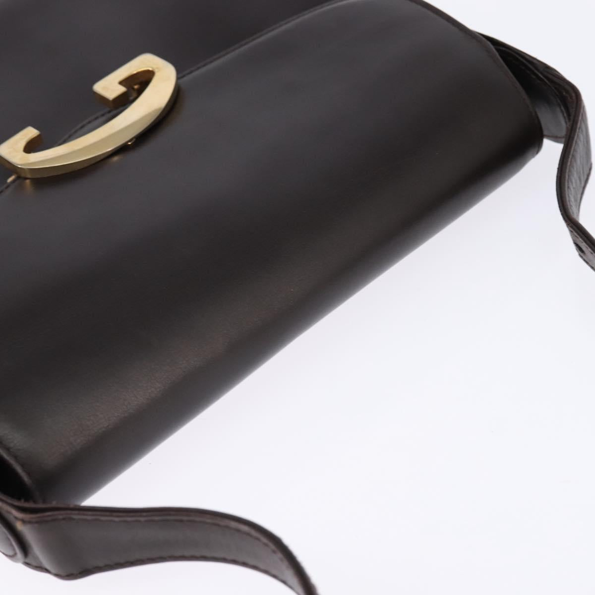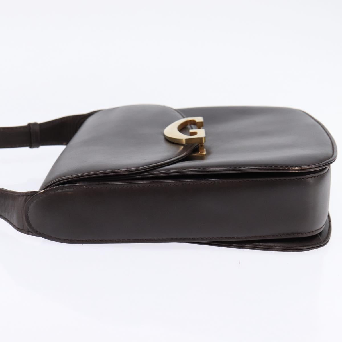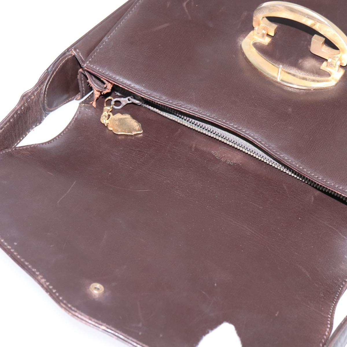 GUCCI Shoulder Bag Leather Brown Gold Auth BA6440