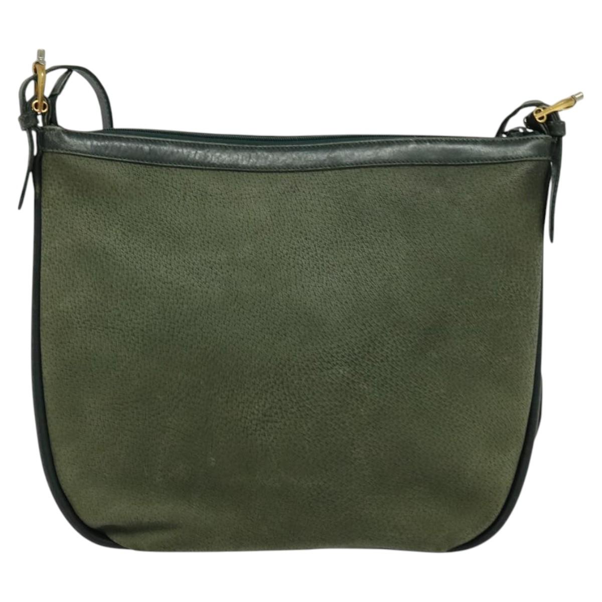 GUCCI Shoulder Bag Leather Green Gold Auth am8352