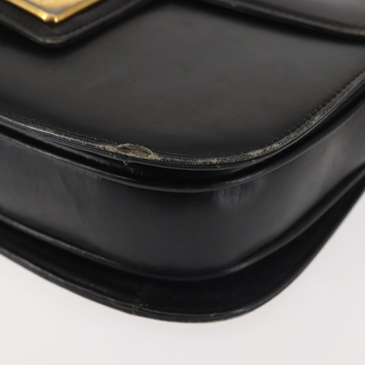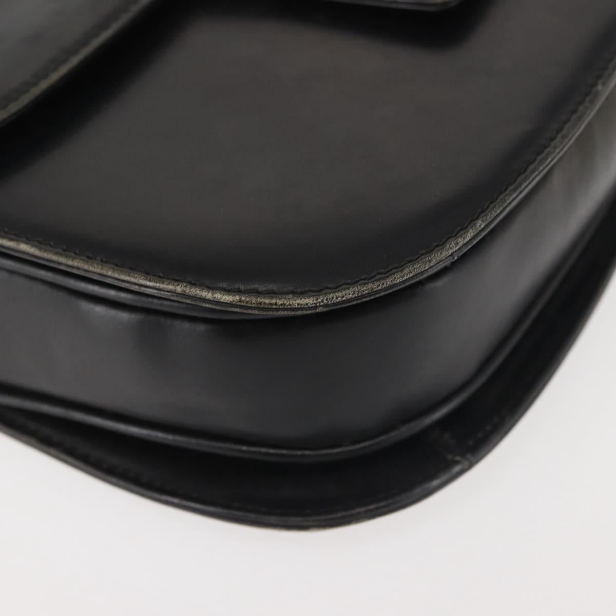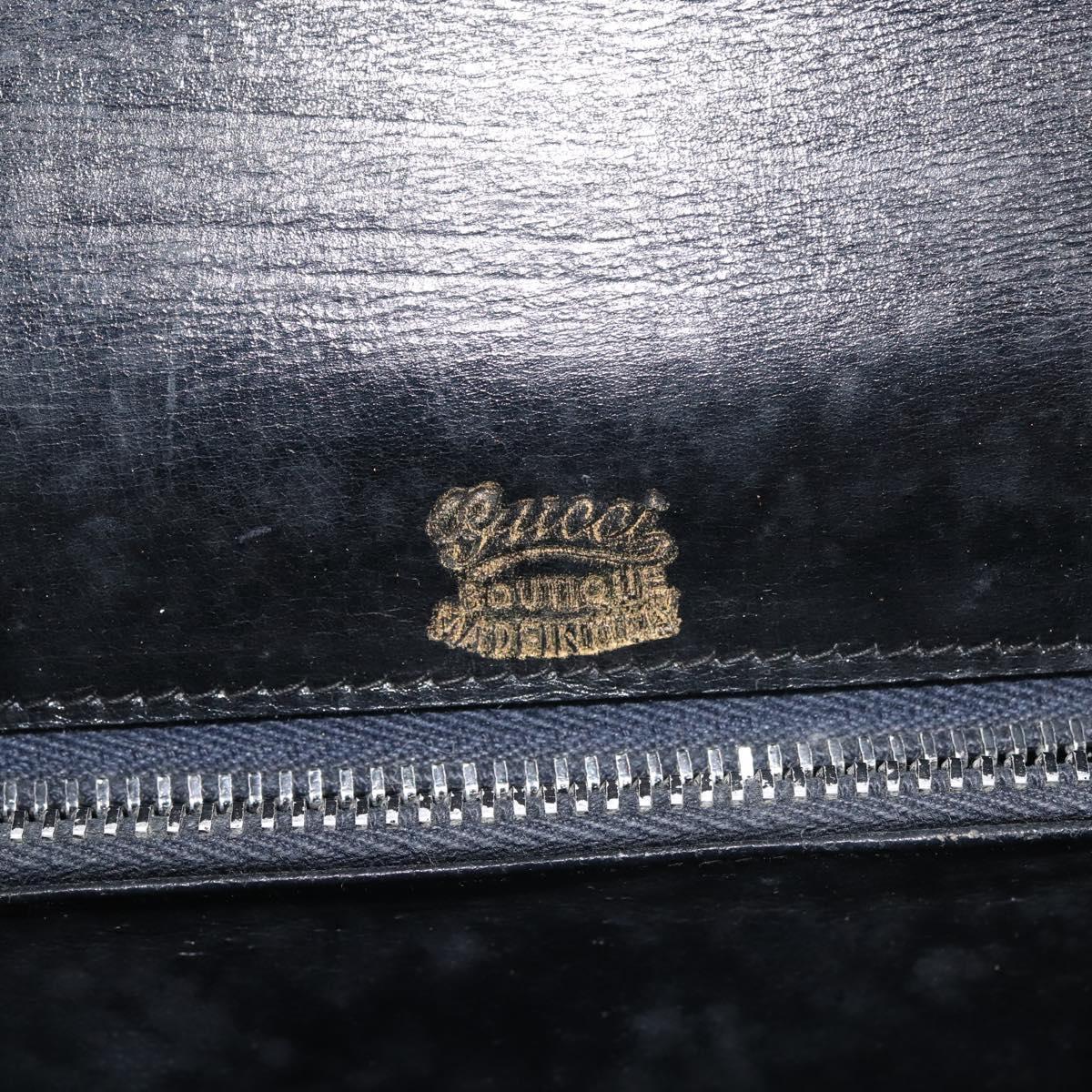 GUCCI Shoulder Bag Leather Navy Gold Auth BA6320