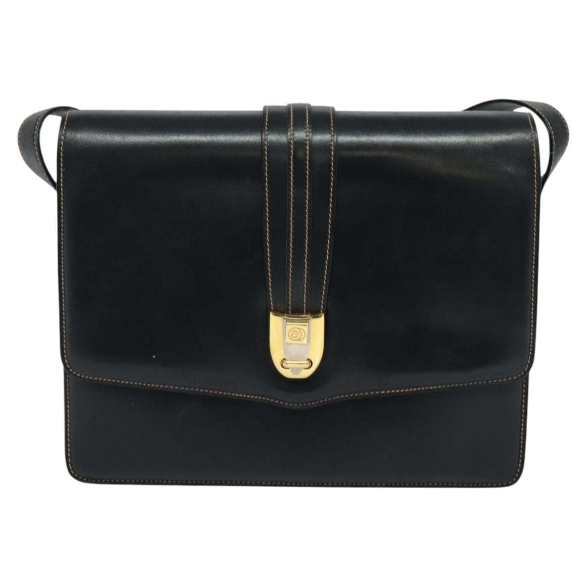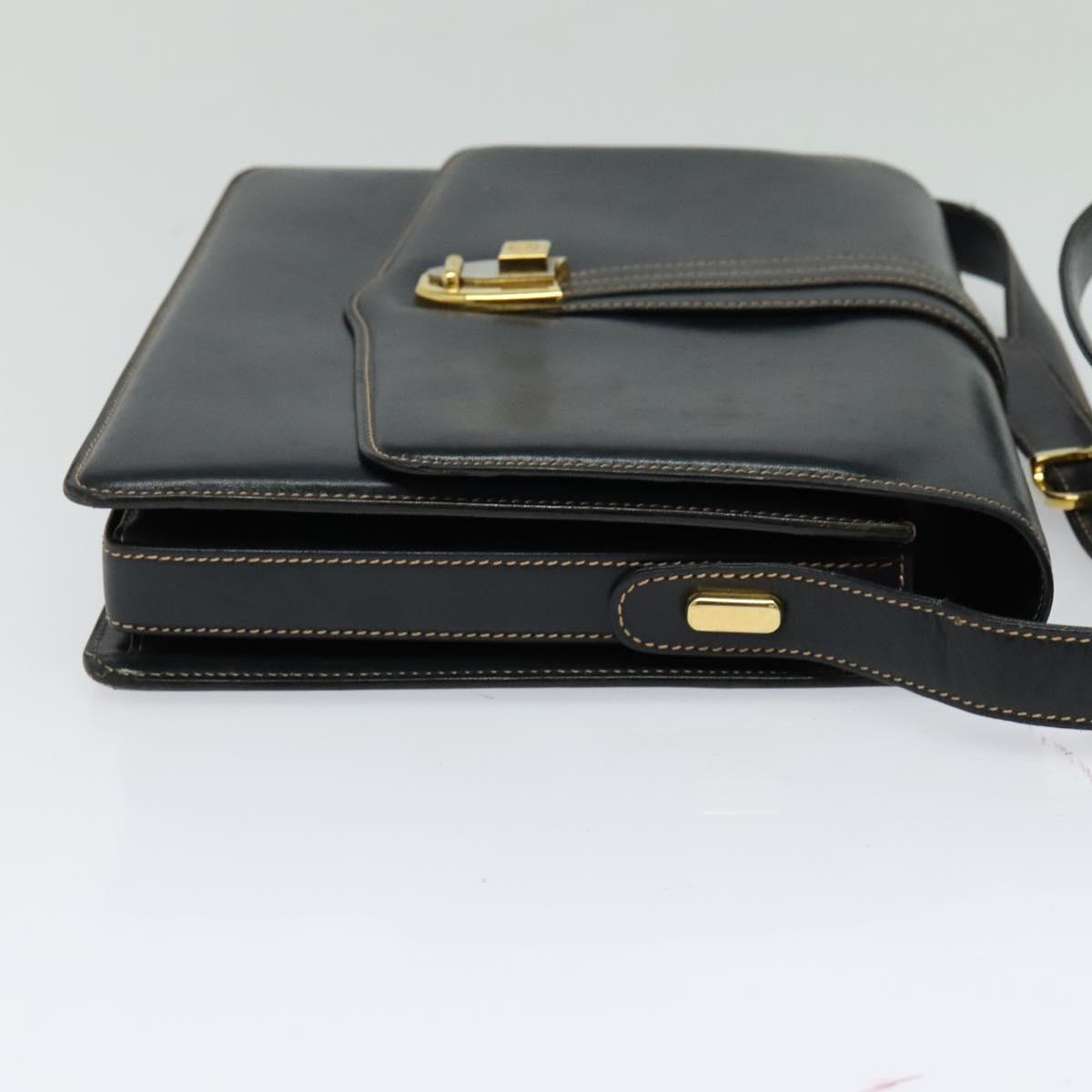 GUCCI Shoulder Bag Leather Navy Gold Auth BD2006