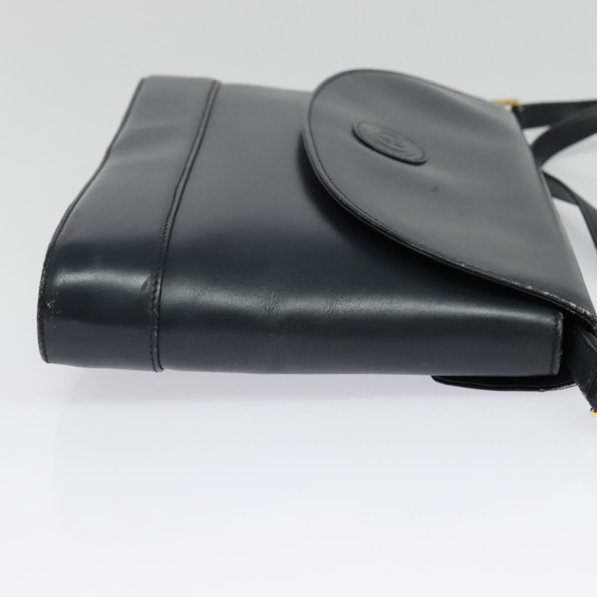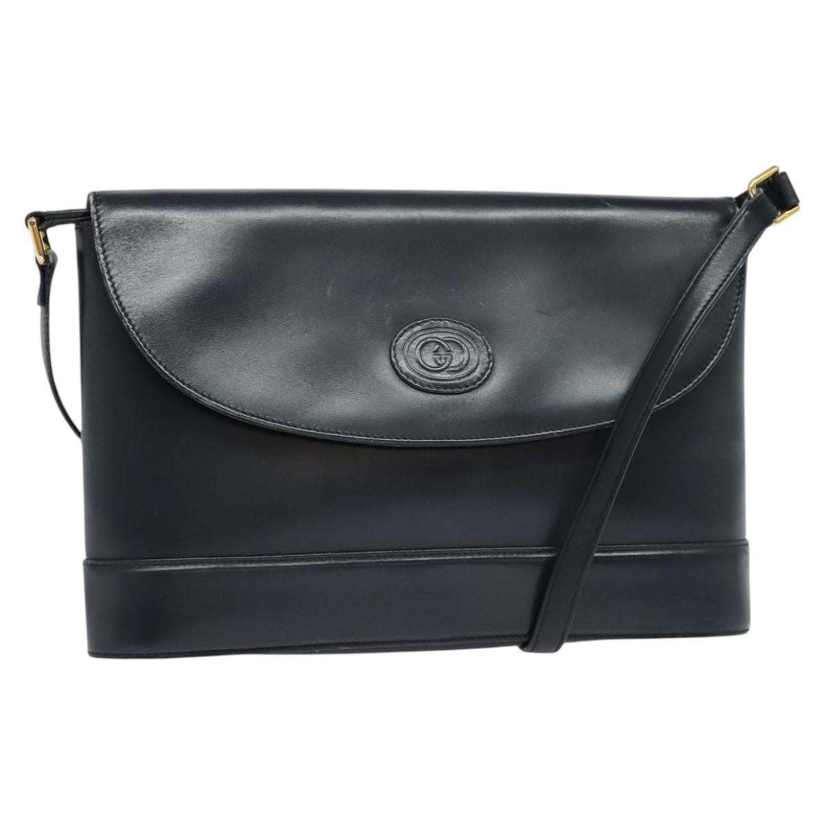 GUCCI Shoulder Bag Leather Navy Gold Auth ep8557