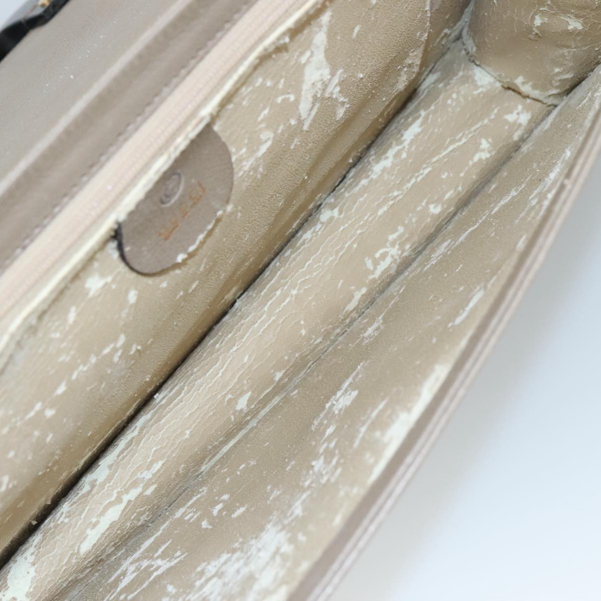 GUCCI Shoulder Bag Leather Wood Beige Black gold Auth bs21980