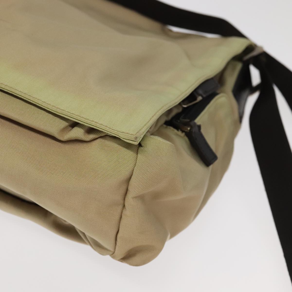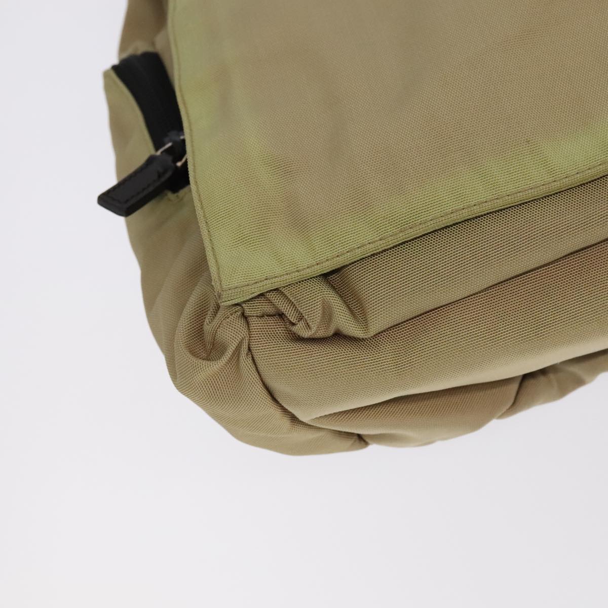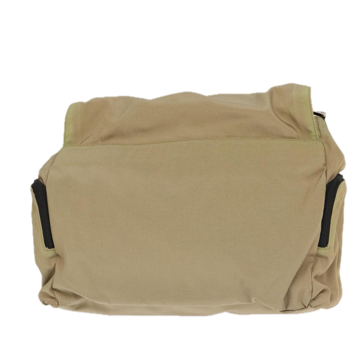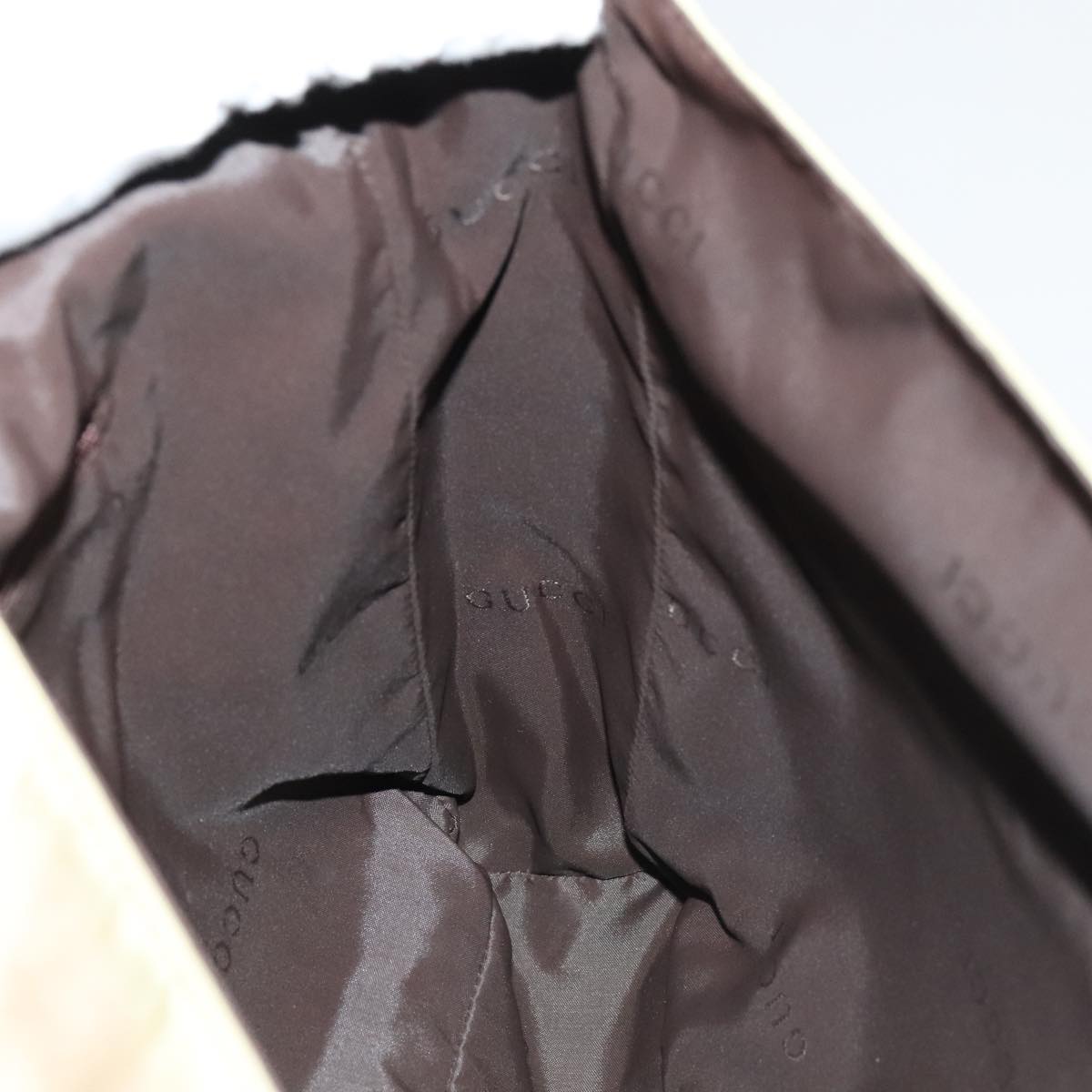 GUCCI Shoulder Bag Nylon Beige Dark Brown Silver 019.0340 Auth ti2214