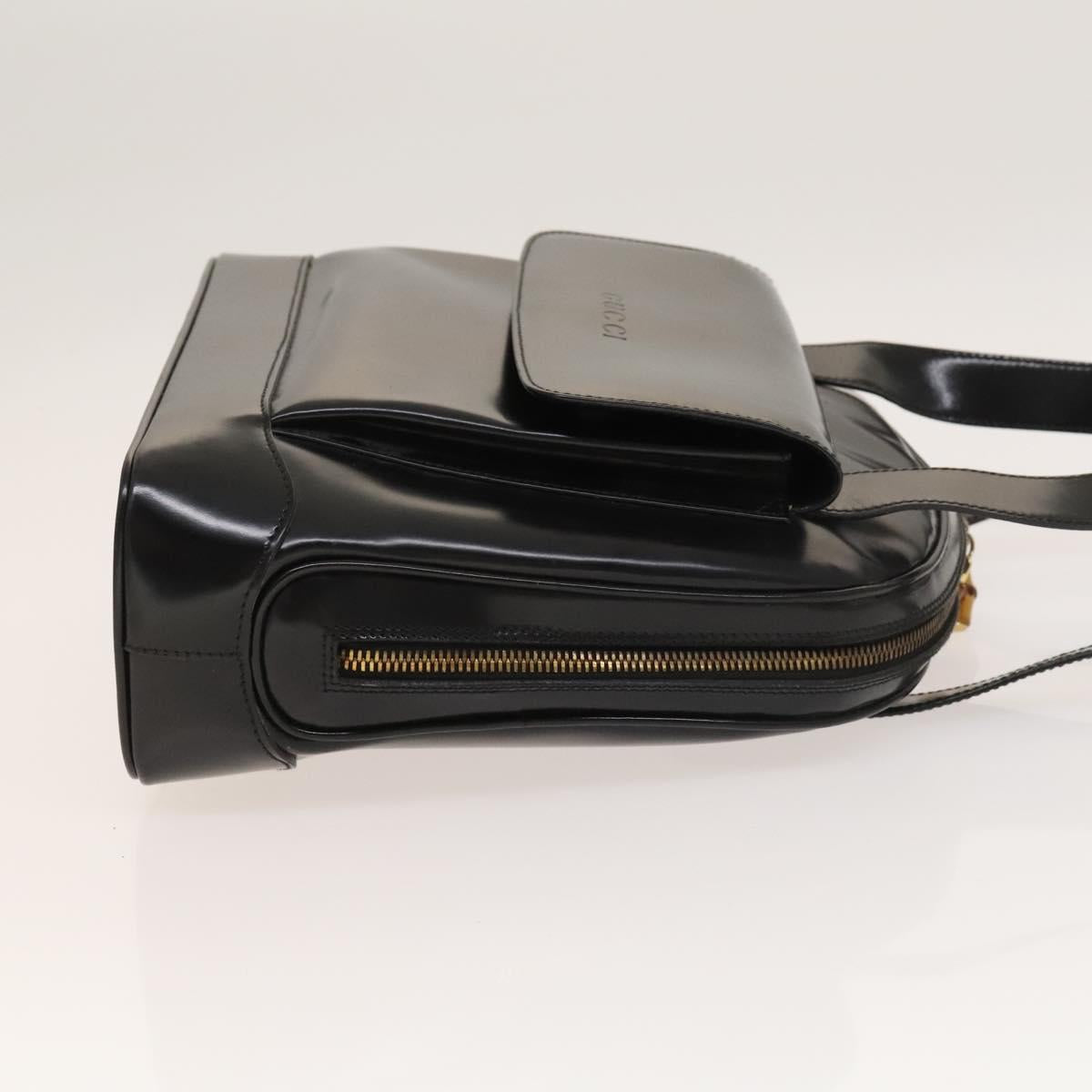 GUCCI Shoulder Bag Patent leather Black Gold Auth ep9690