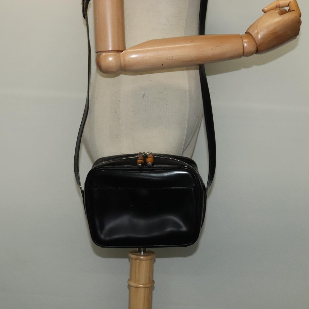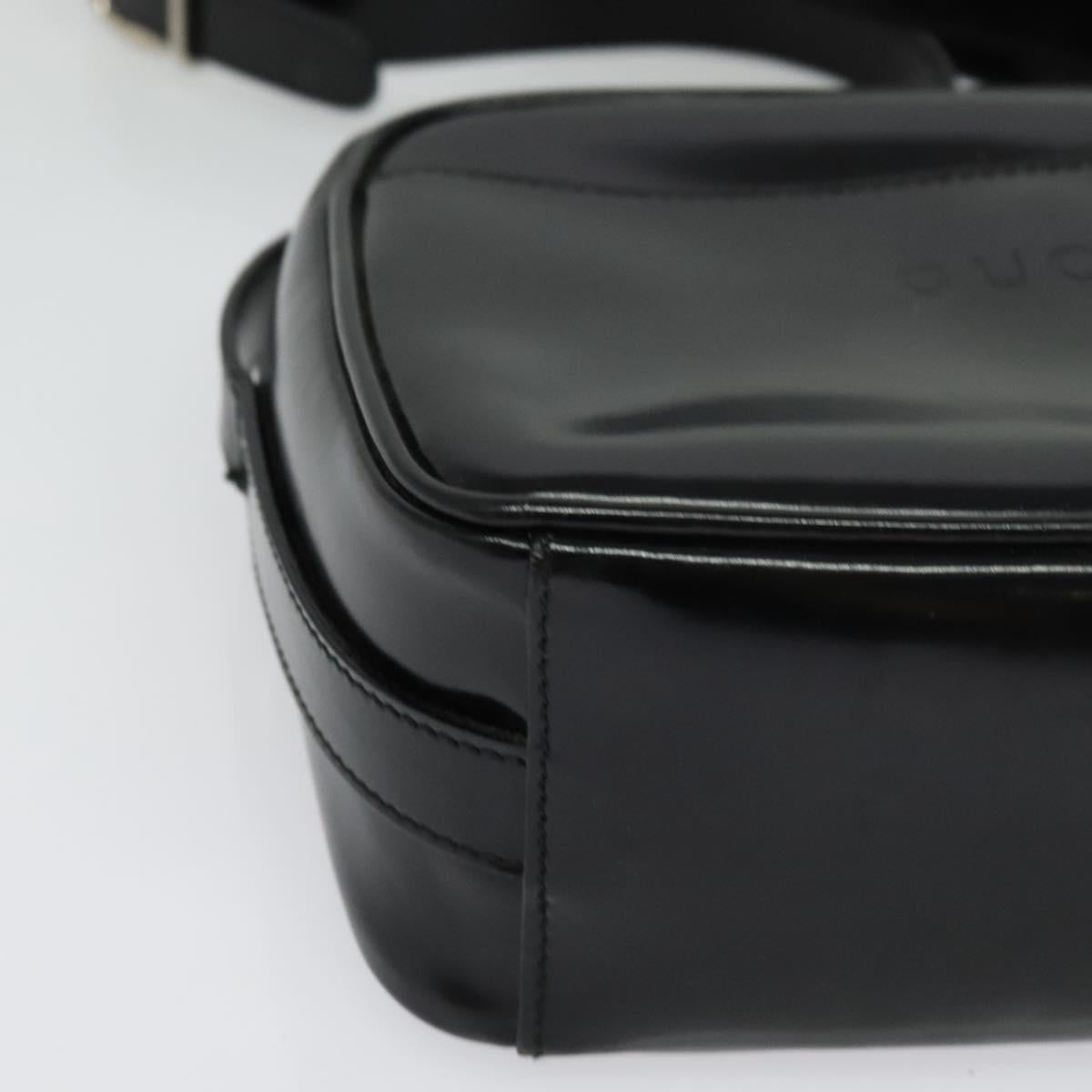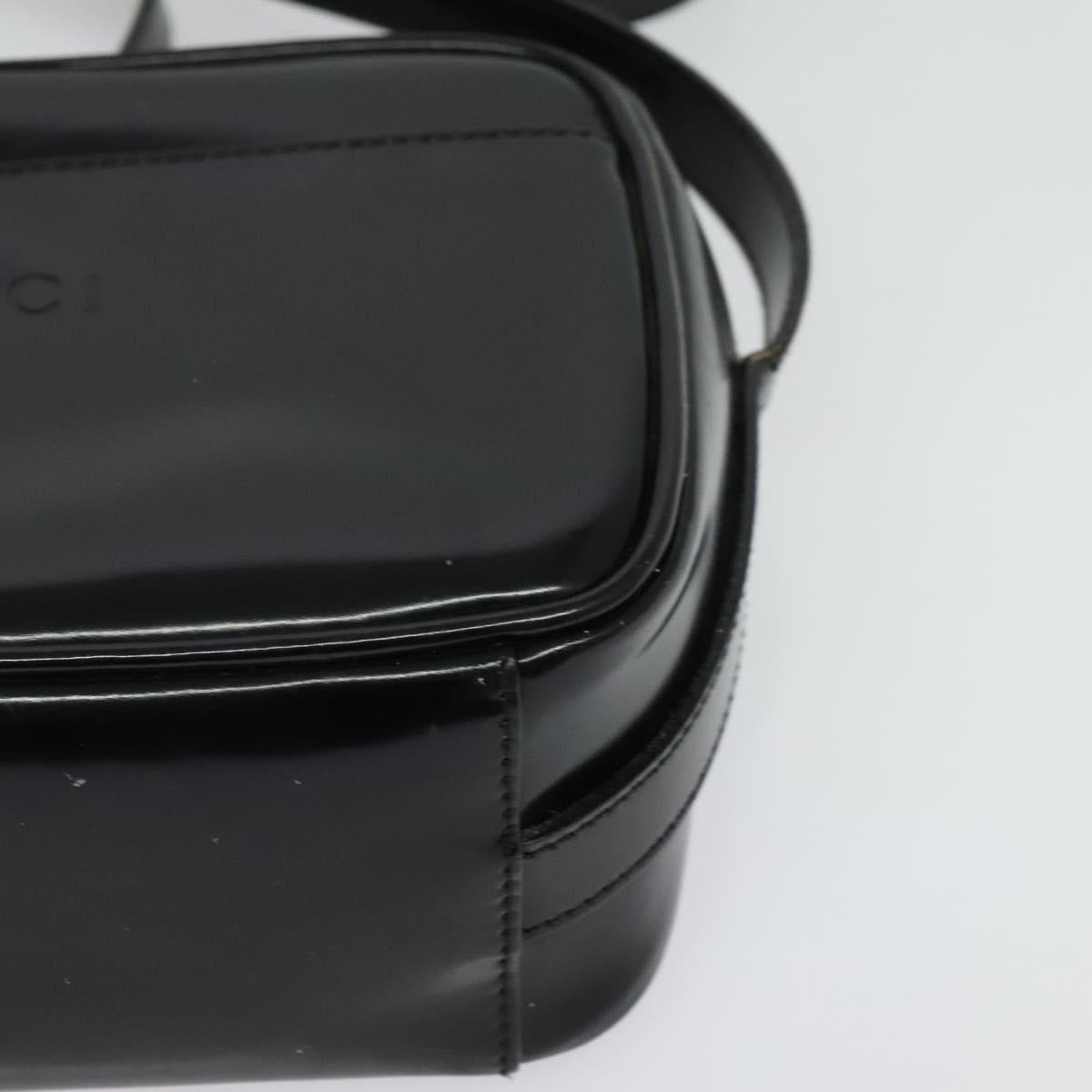 GUCCI Shoulder Bag Patent leather Black Silver Auth ep10410