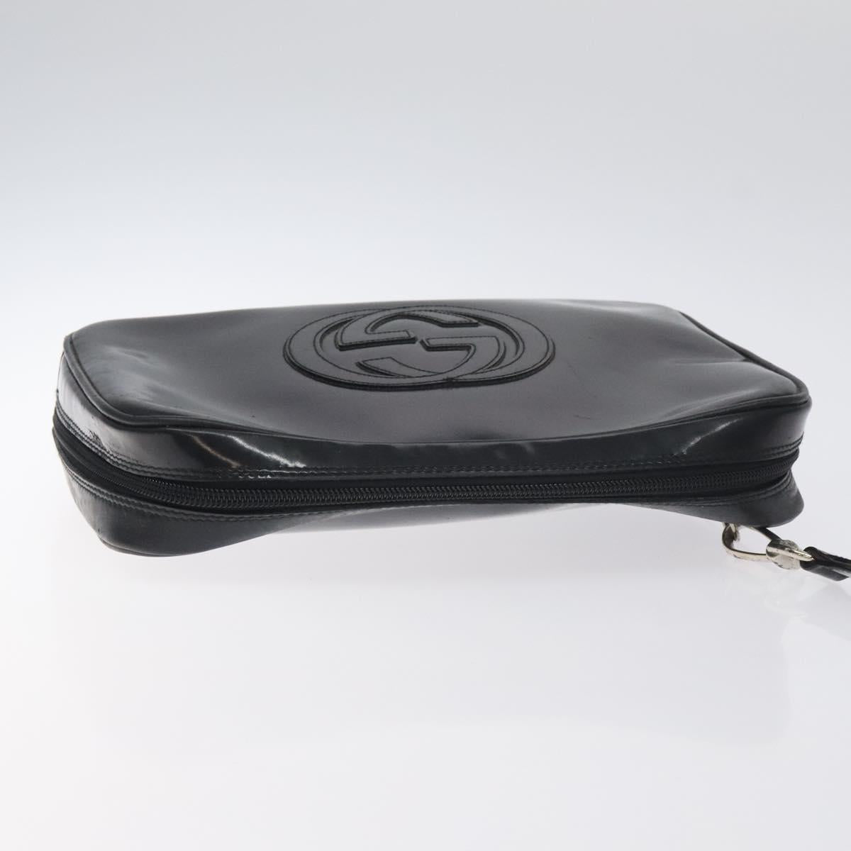 GUCCI Soho Clutch Bag Enamel Black Silver Auth bs27084