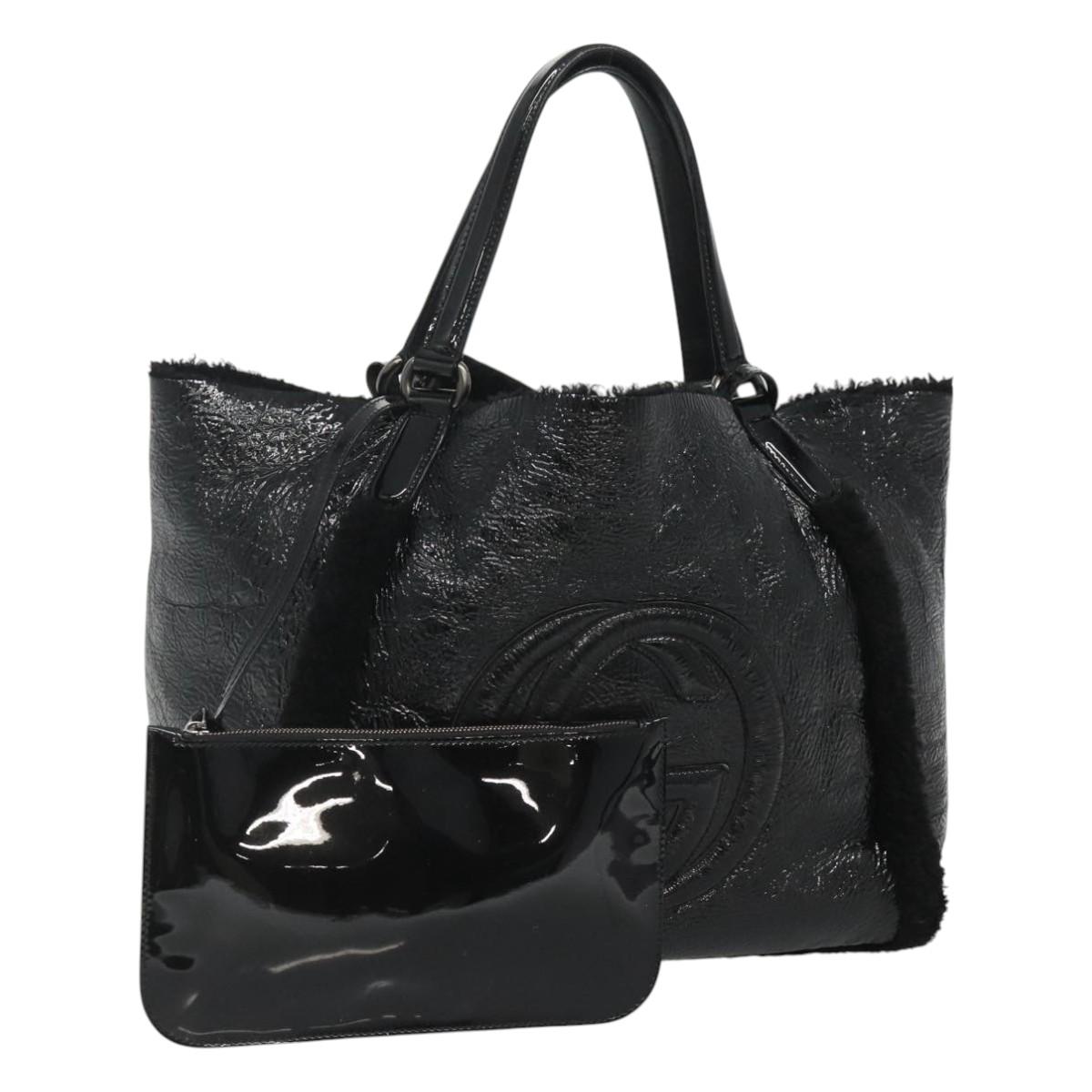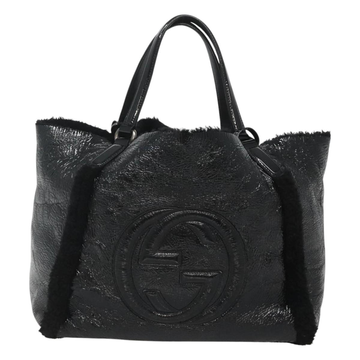 GUCCI Soho Hand Bag Enamel Black 282309 Auth ep8760