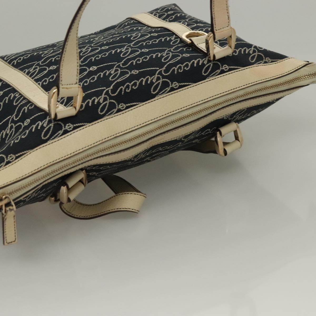 GUCCI Tote Bag Canvas Navy Gold 141470 Auth 133157
