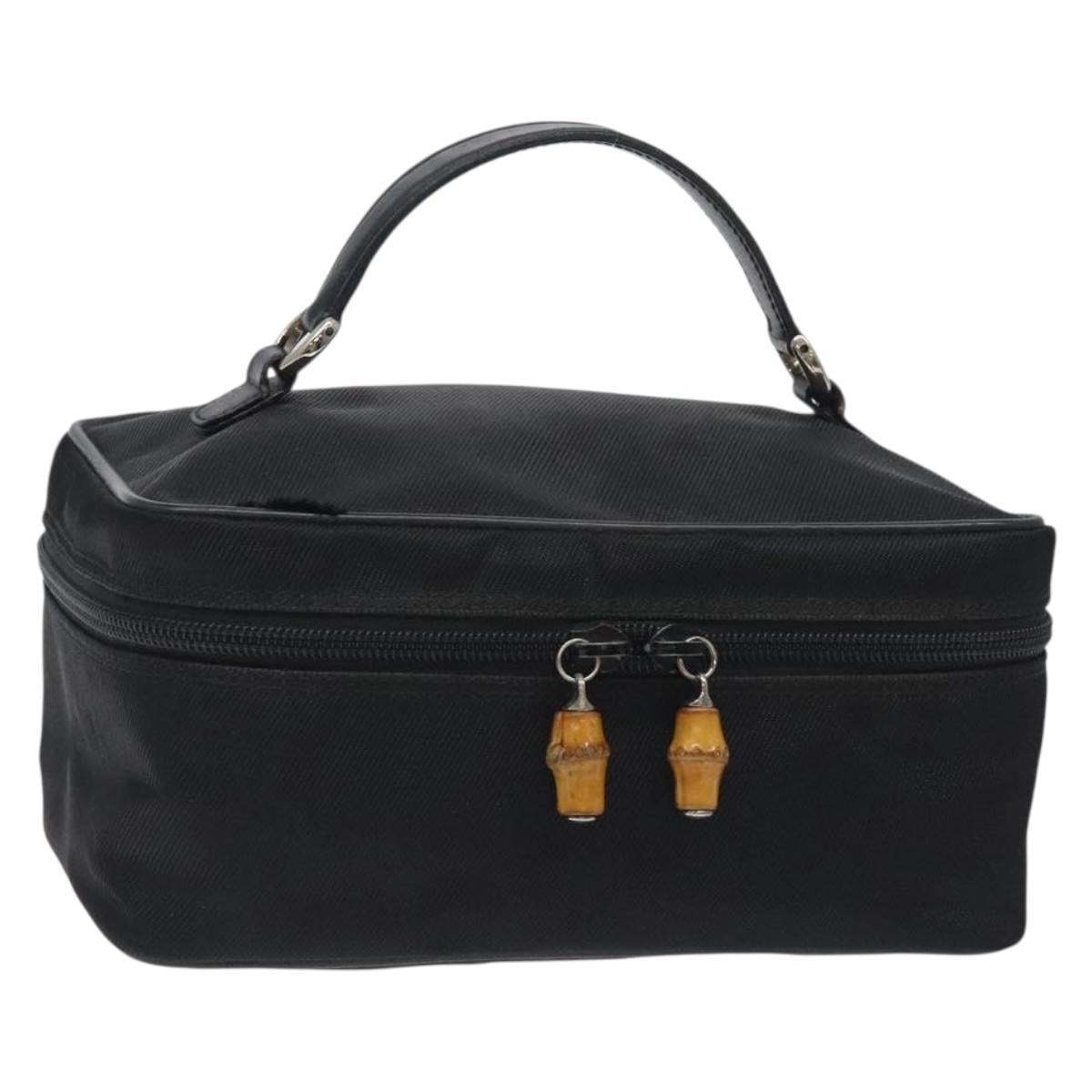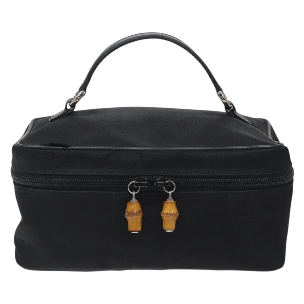 GUCCI Vanity Bamboo Pouch Nylon Black Silver 032 2265 0150 Auth bs27552