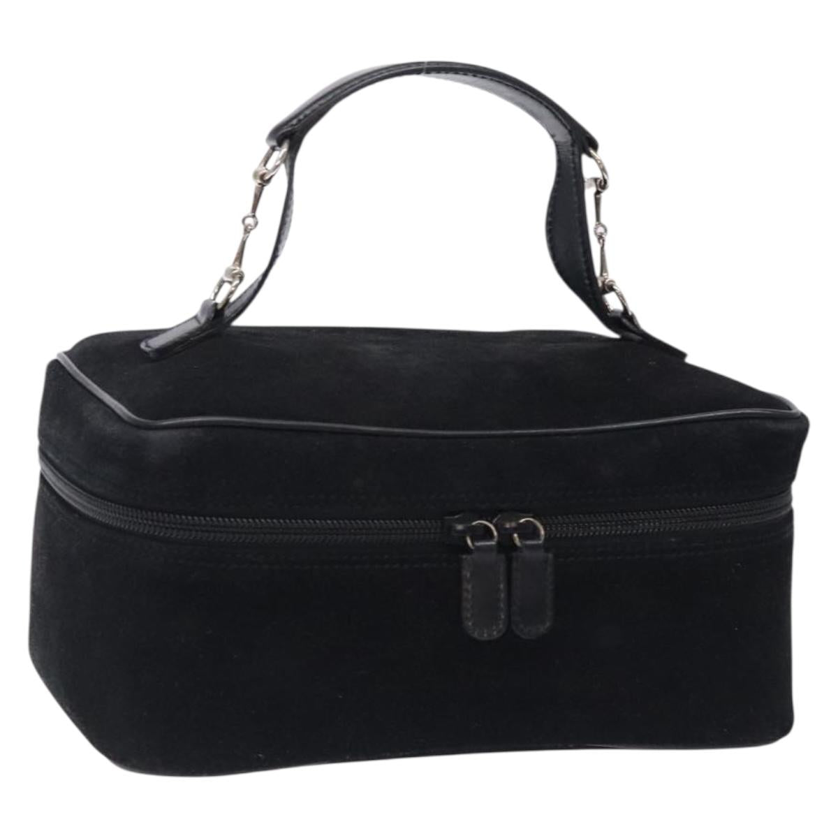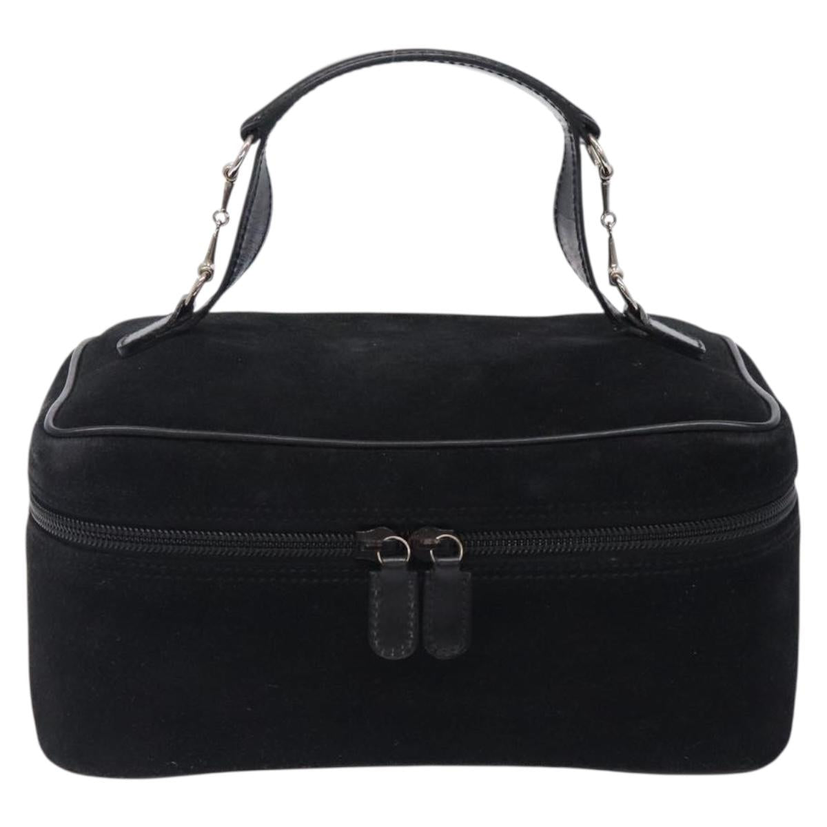 GUCCI Vanity Cosmetic Pouch Suede Black Silver 032 1705 0140 Auth 134479