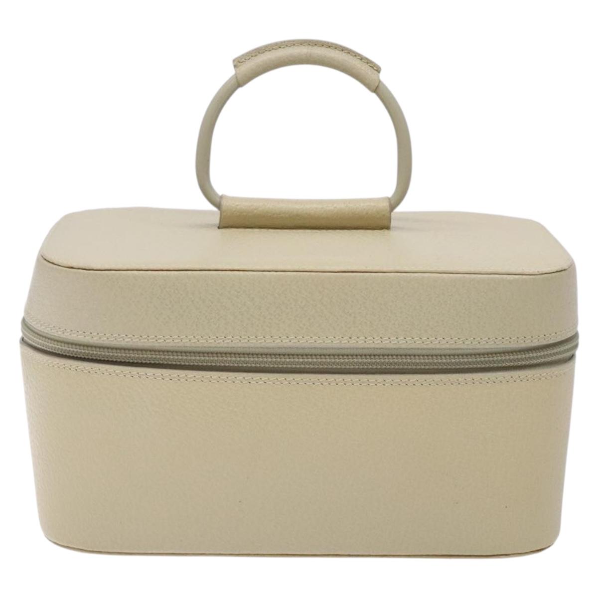 GUCCI Vanity Pouch Leather Beige Silver 039 2020 0710 Auth mr1466