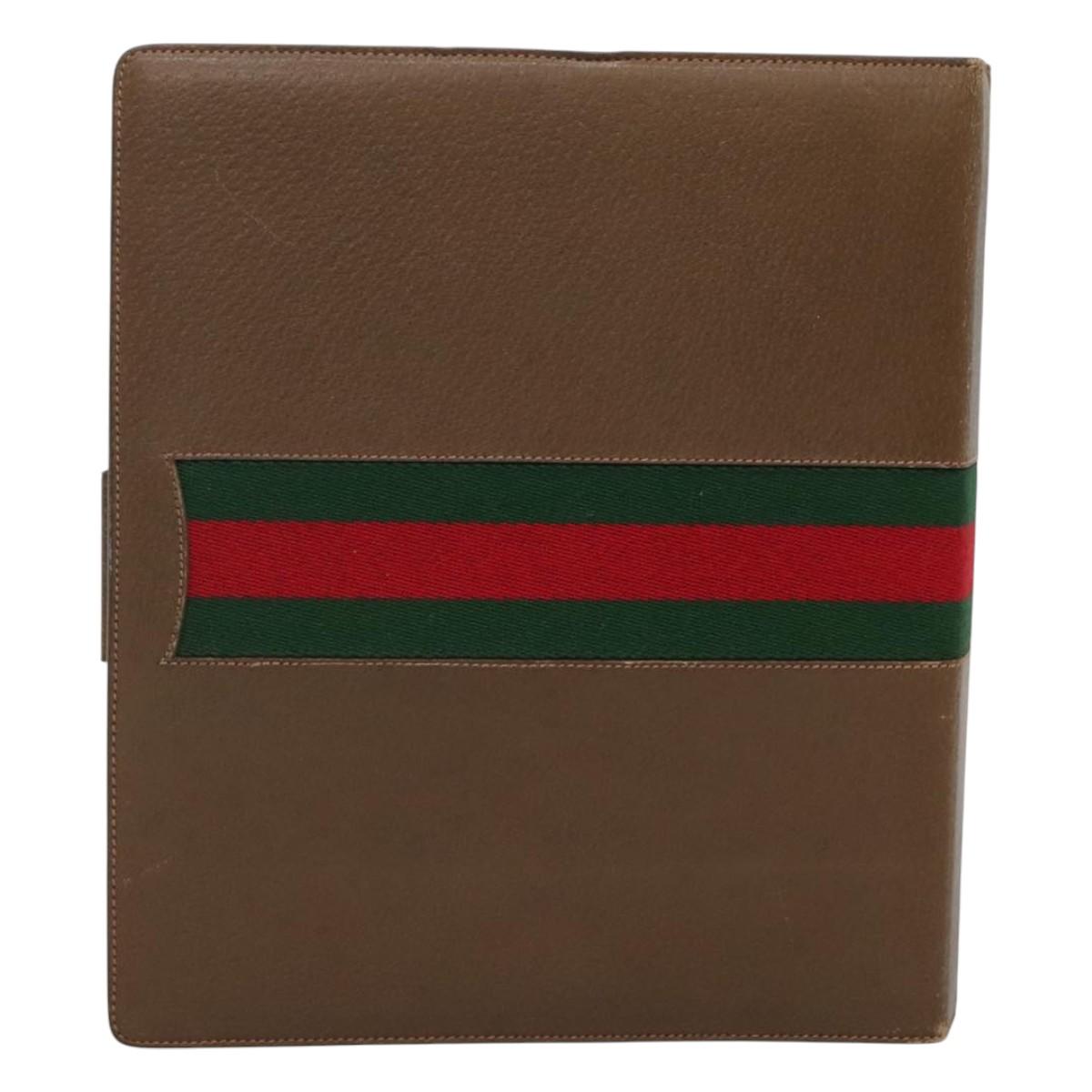 GUCCI Web Sherry Line Day Planner Cover Leather Red Brown Green Auth fm4440