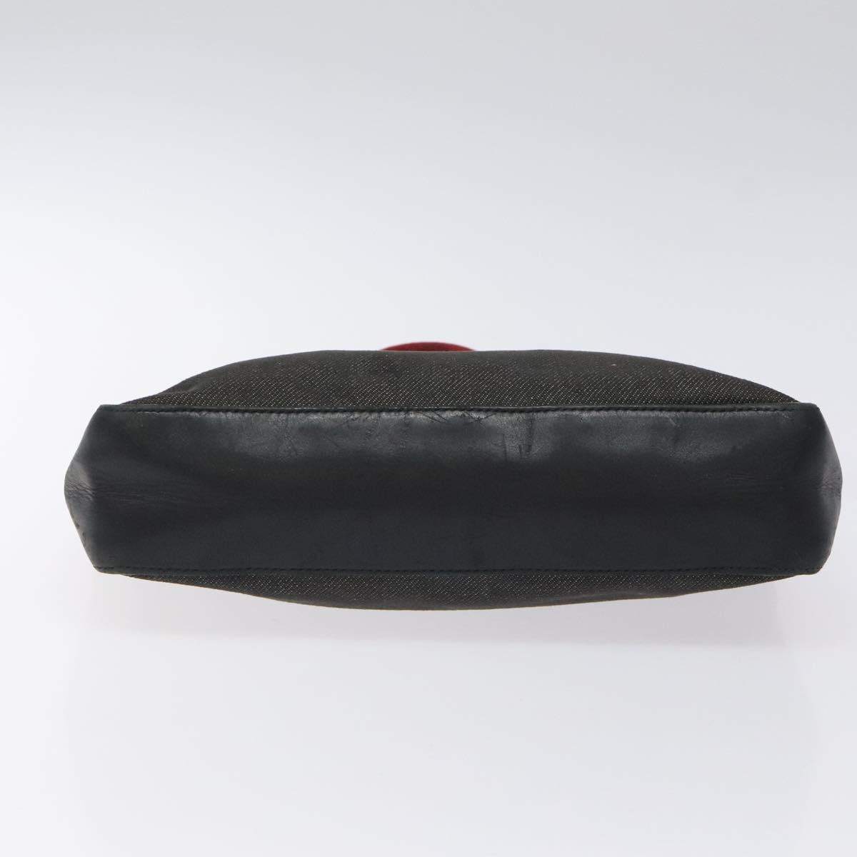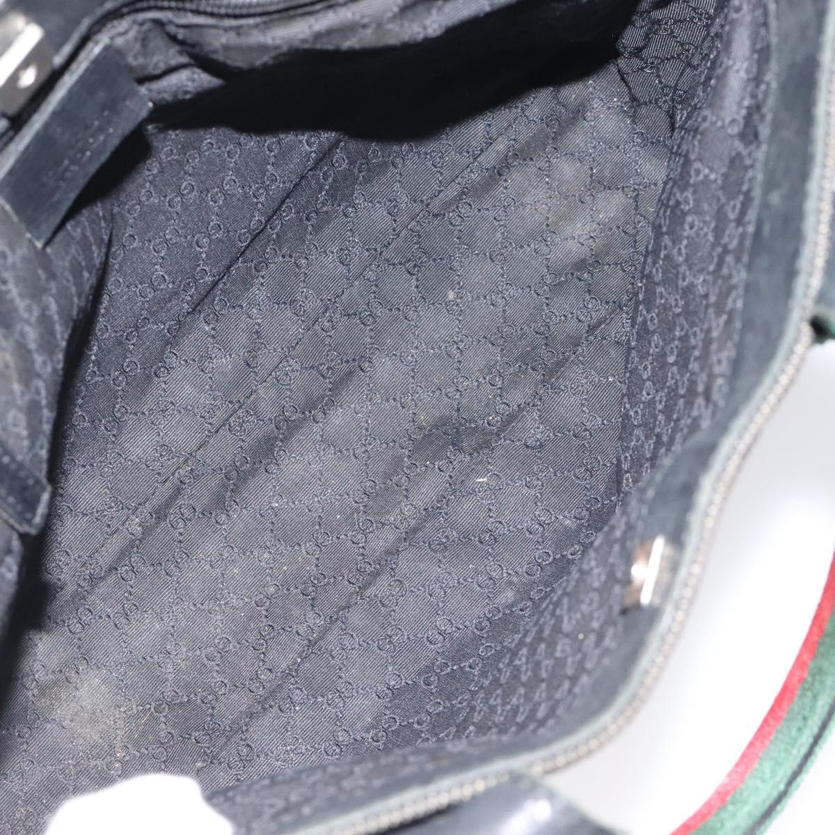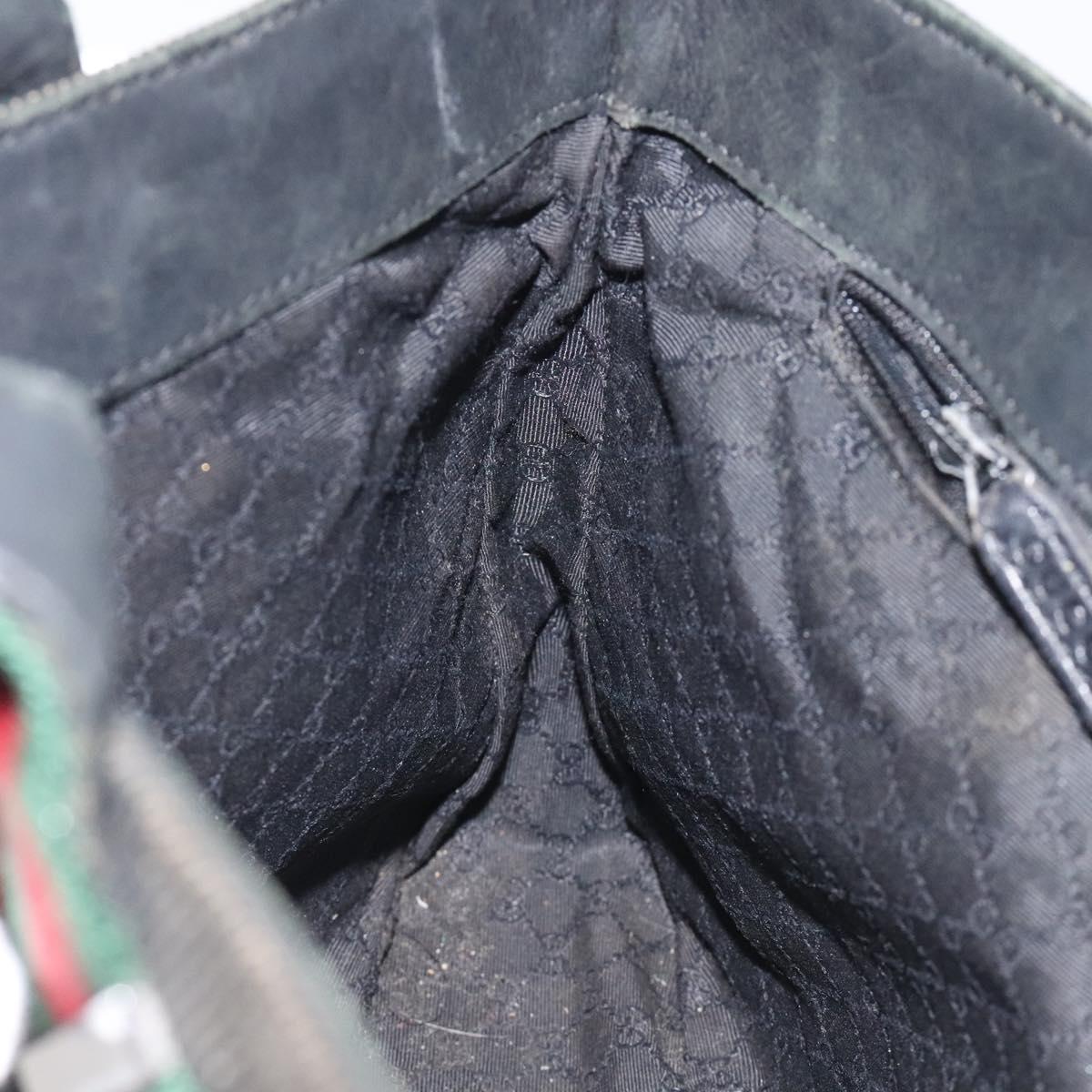 GUCCI Web Sherry Line Hand Bag Canvas Black Silver 73984 Auth ti3159