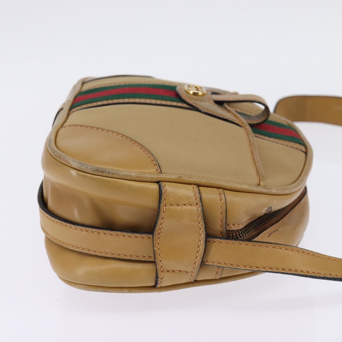 GUCCI Web Sherry Line Shoulder Bag Canvas Leather Beige Gold Auth BA5901