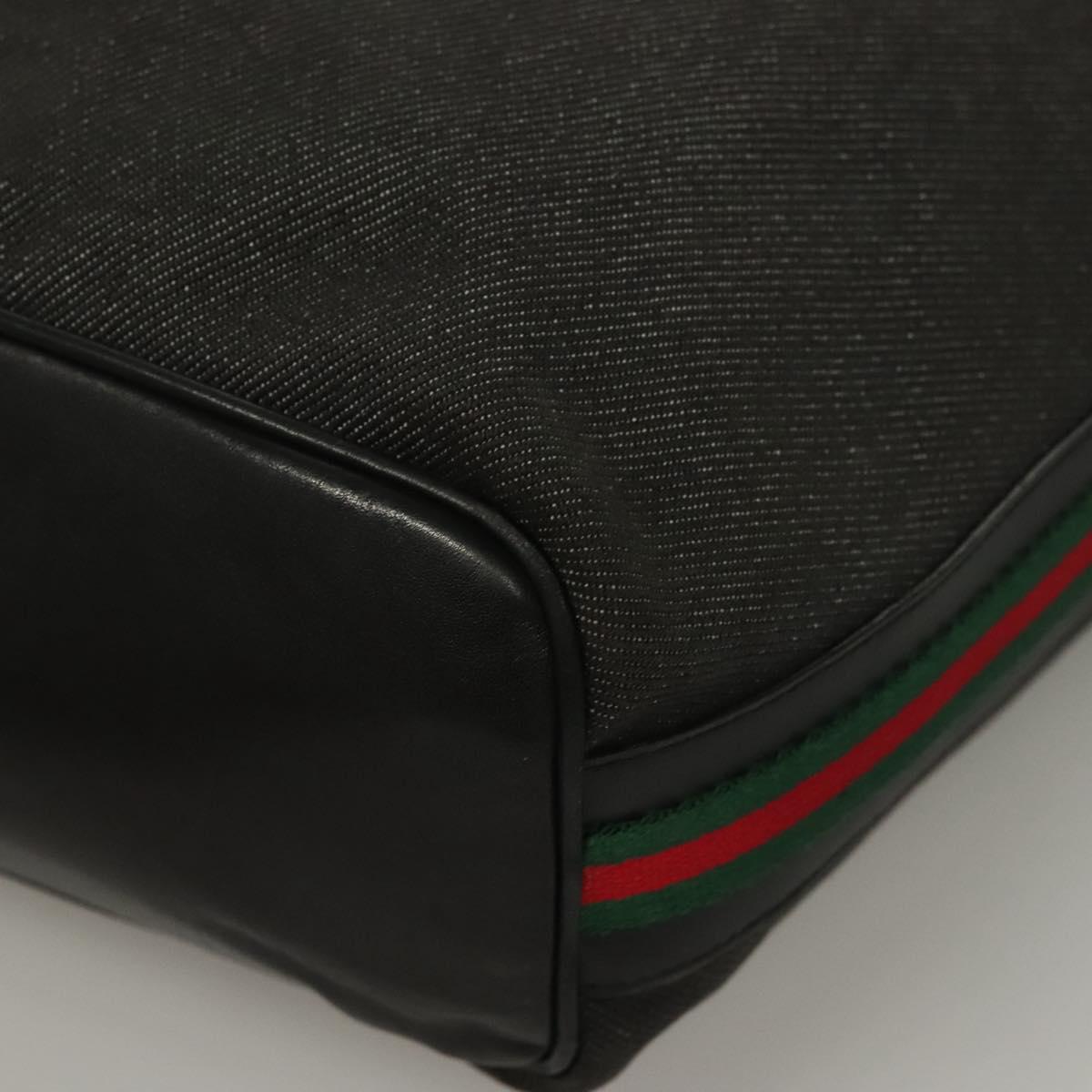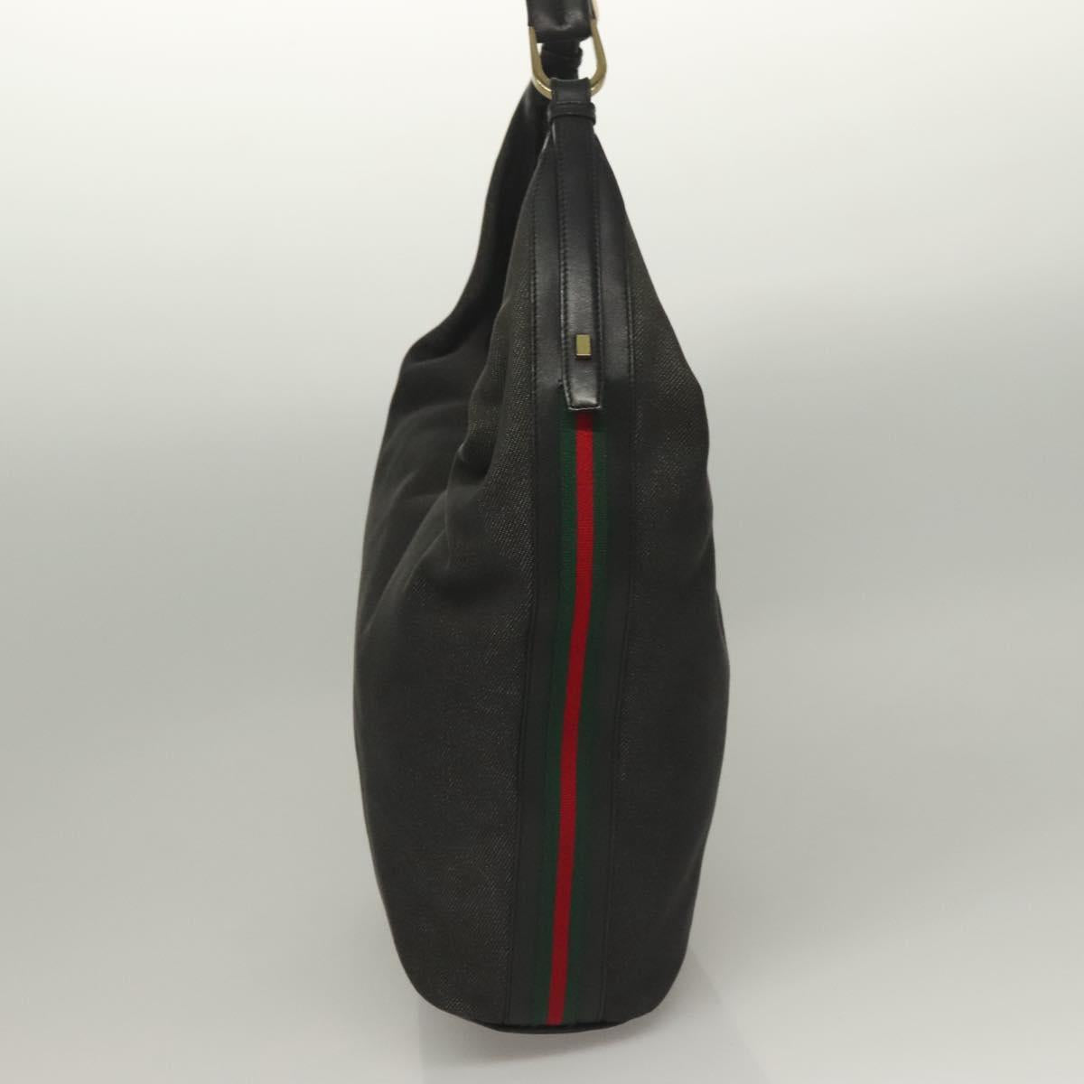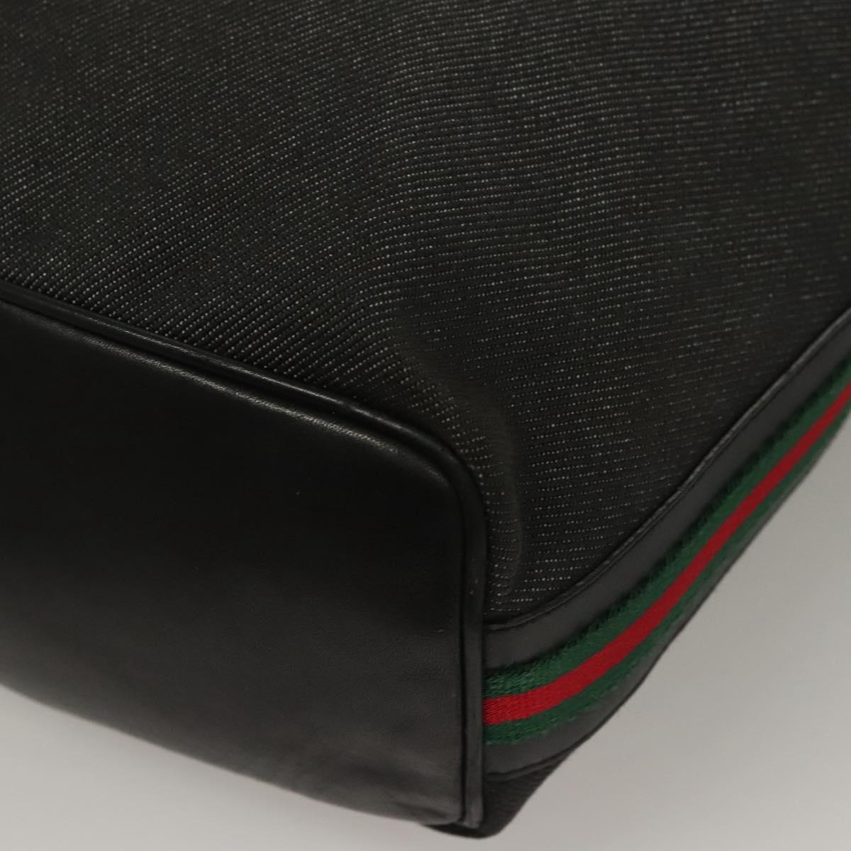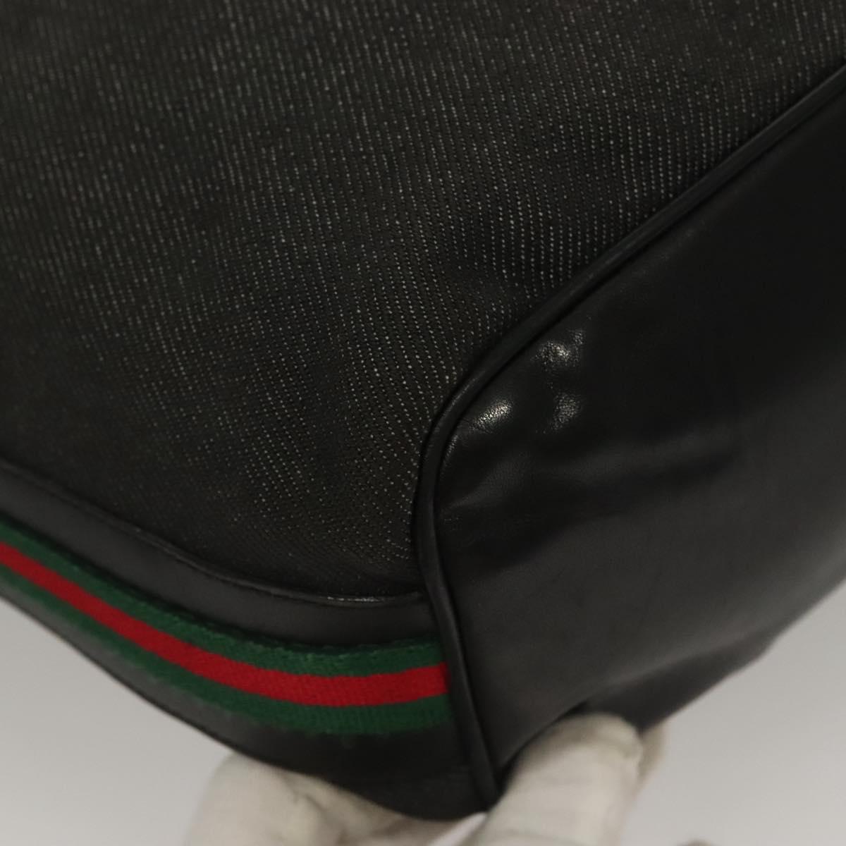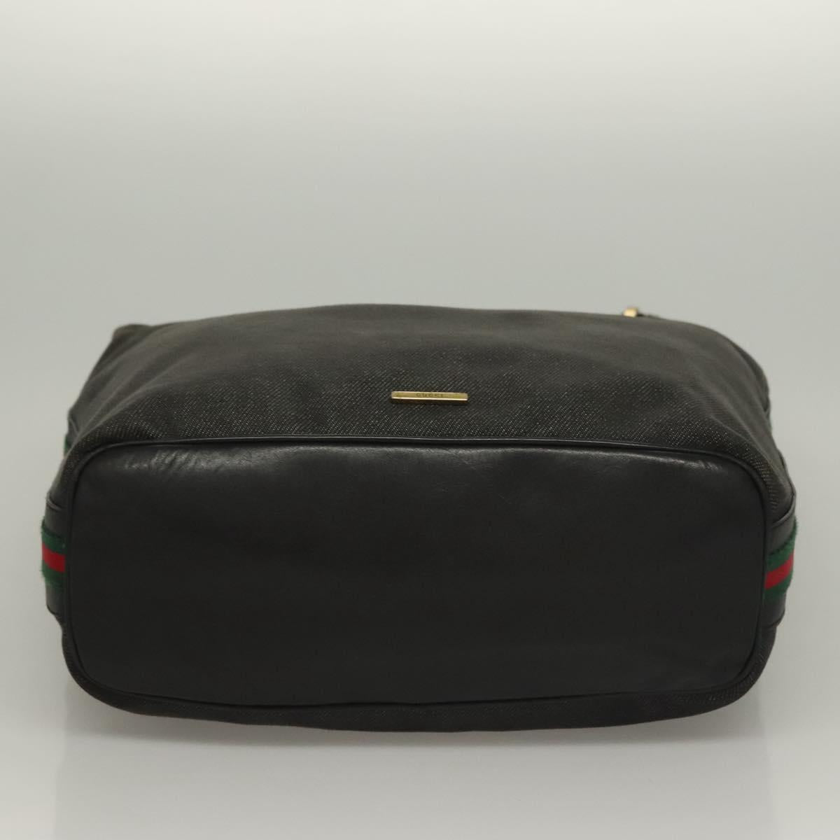 GUCCI Web Sherry Line Shoulder Bag Denim Black Gold 73884 Auth bs27901