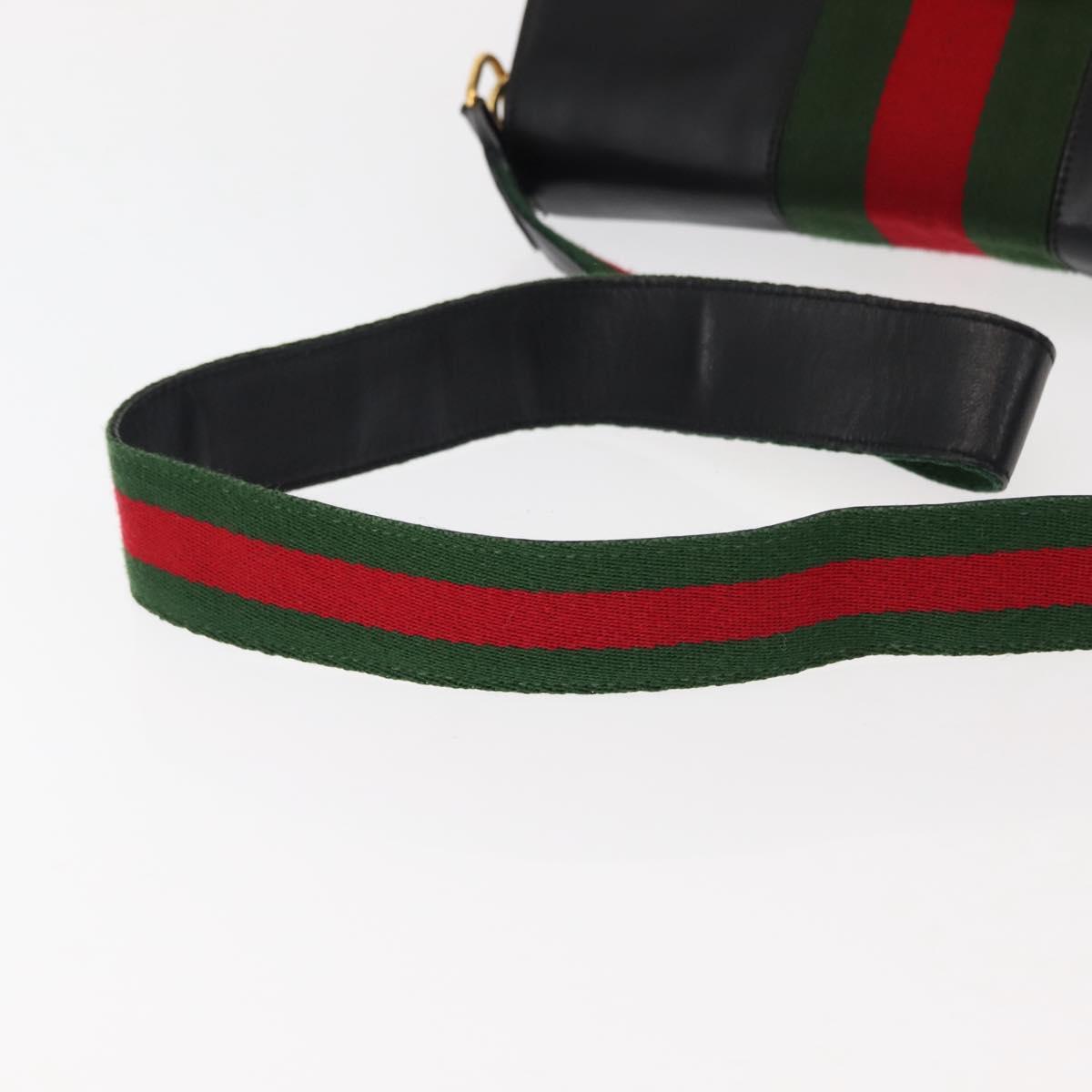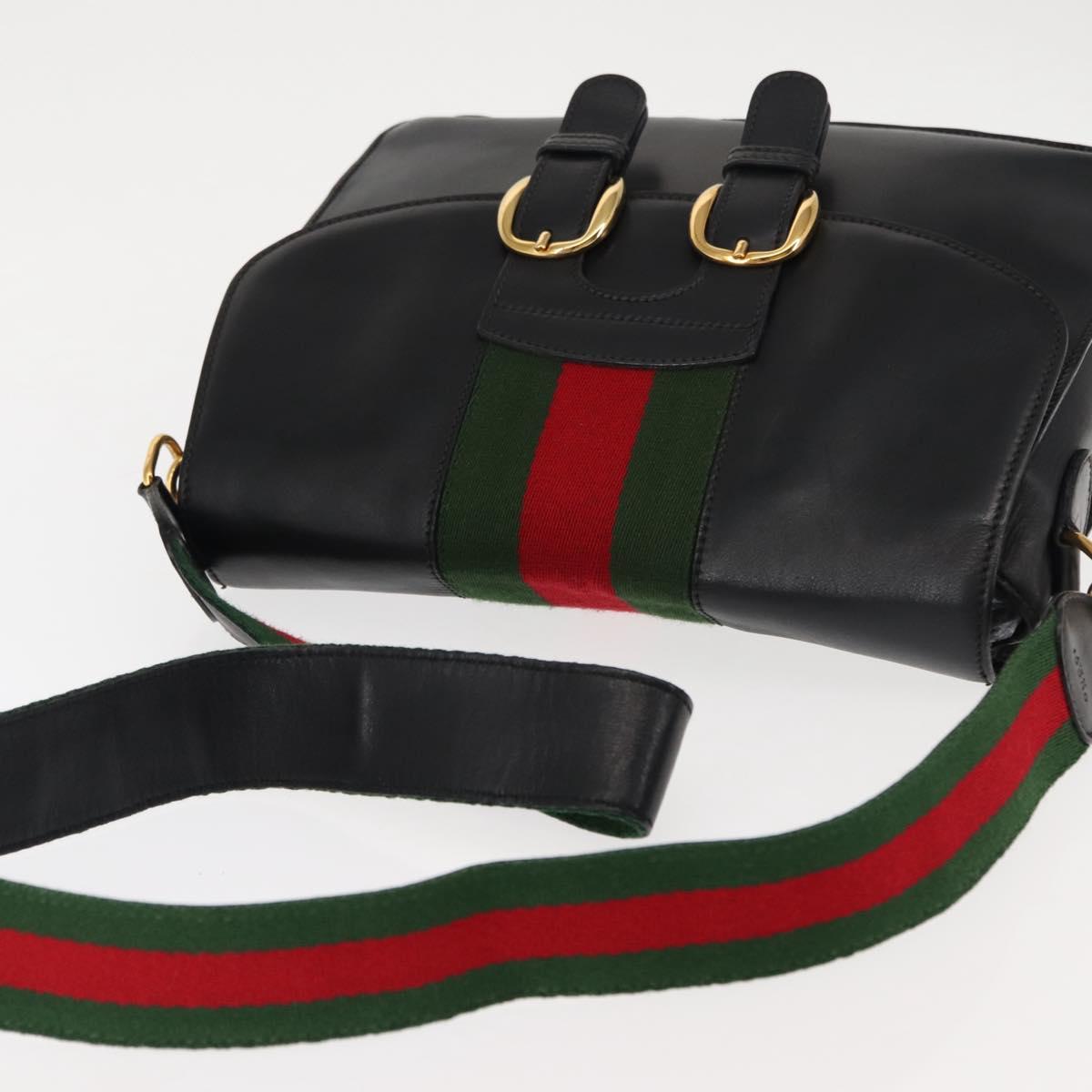 GUCCI Web Sherry Line Shoulder Bag Leather Black Gold 001 1014 1660 Auth 147145