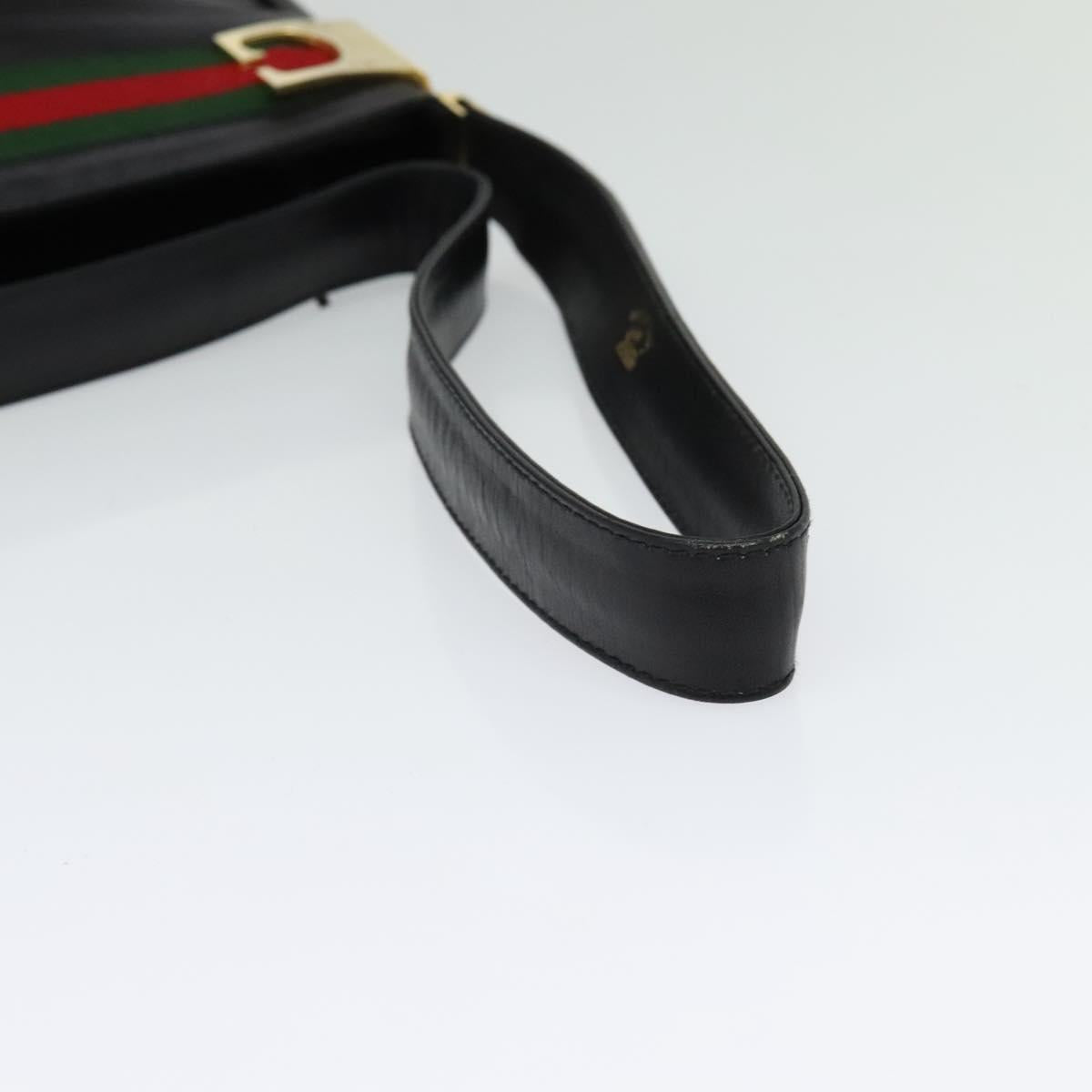 GUCCI Web Sherry Line Shoulder Bag Leather Black Gold Auth BA4189
