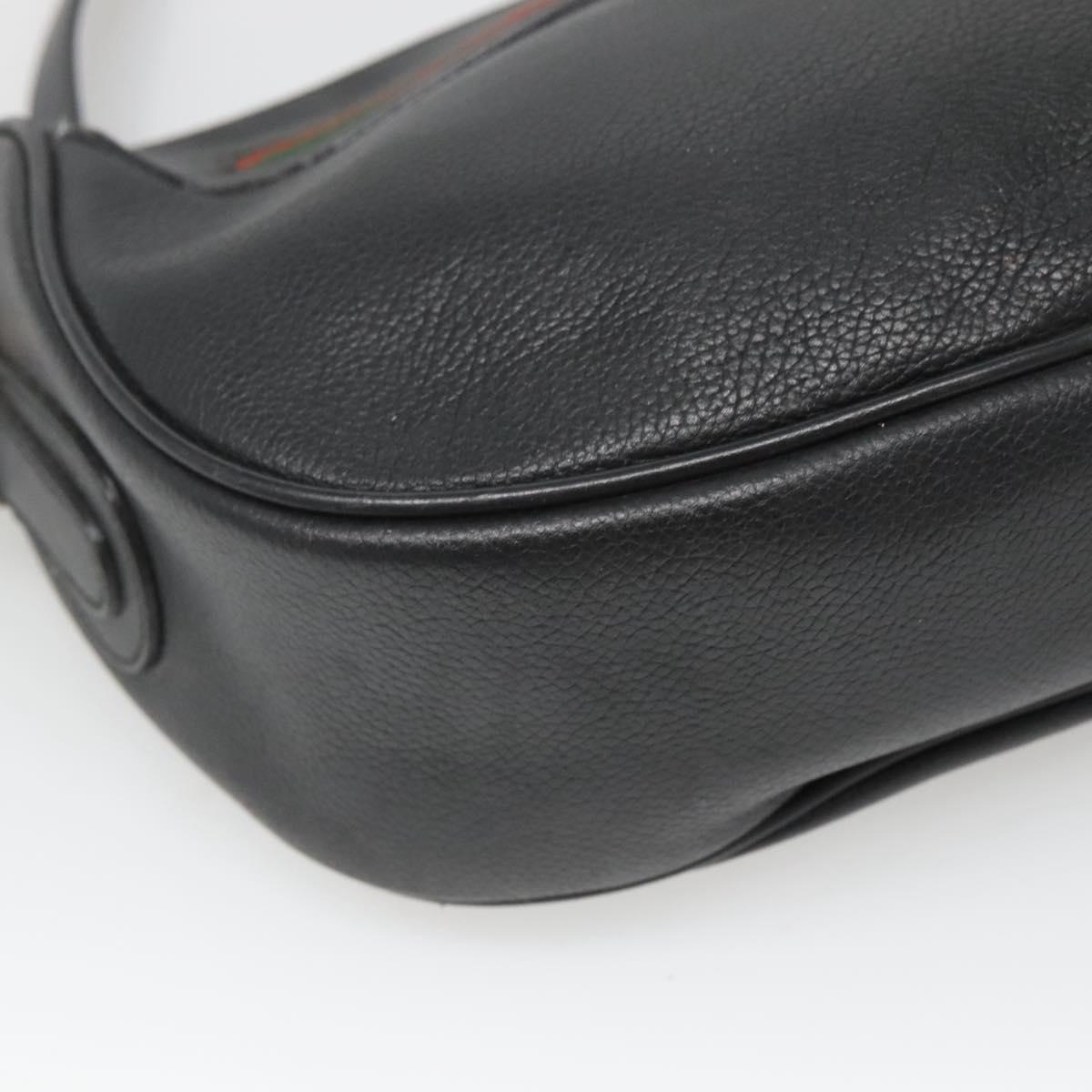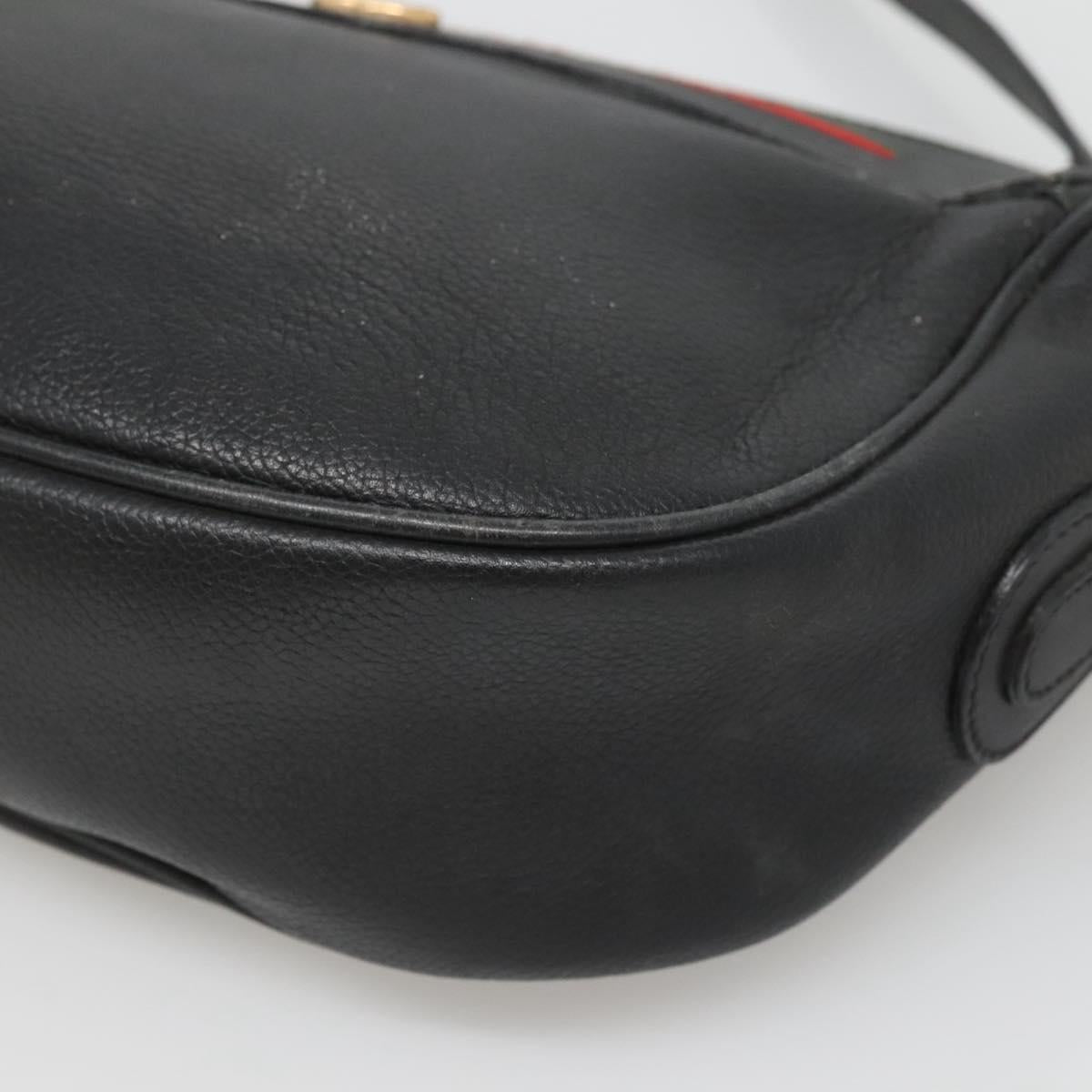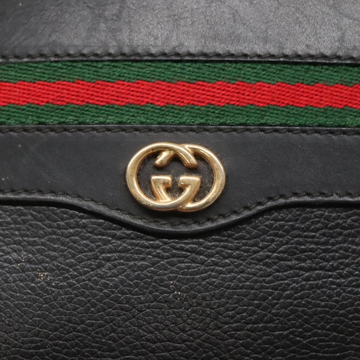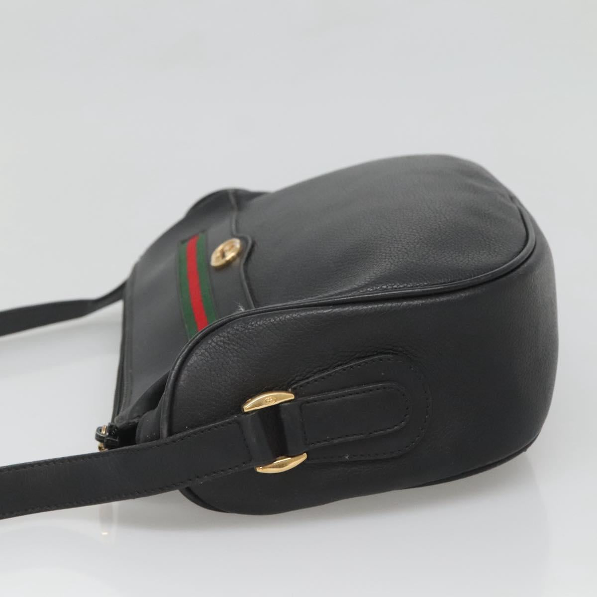 GUCCI Web Sherry Line Shoulder Bag Leather Black Gold 001 104 0918 Auth ep8999