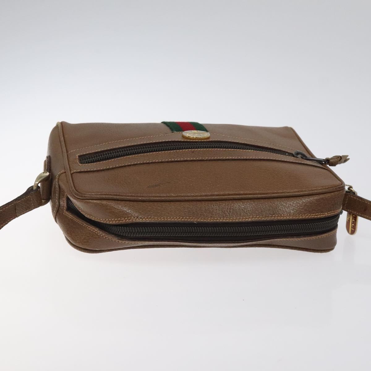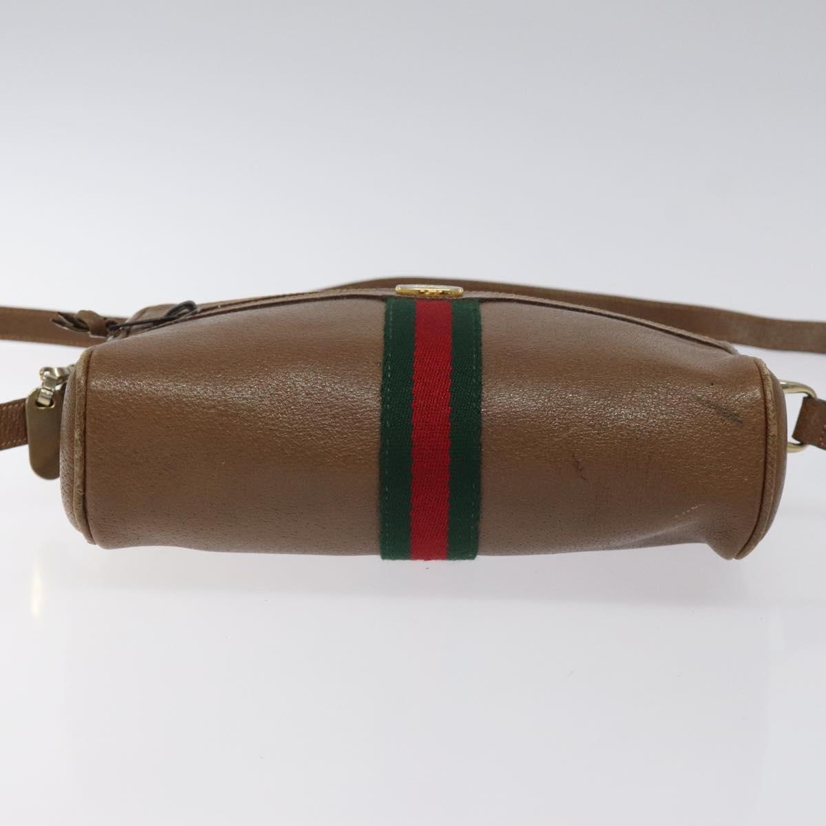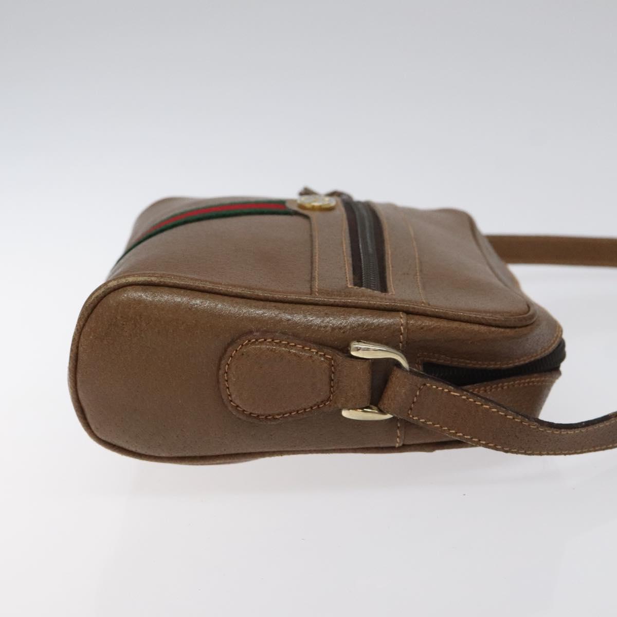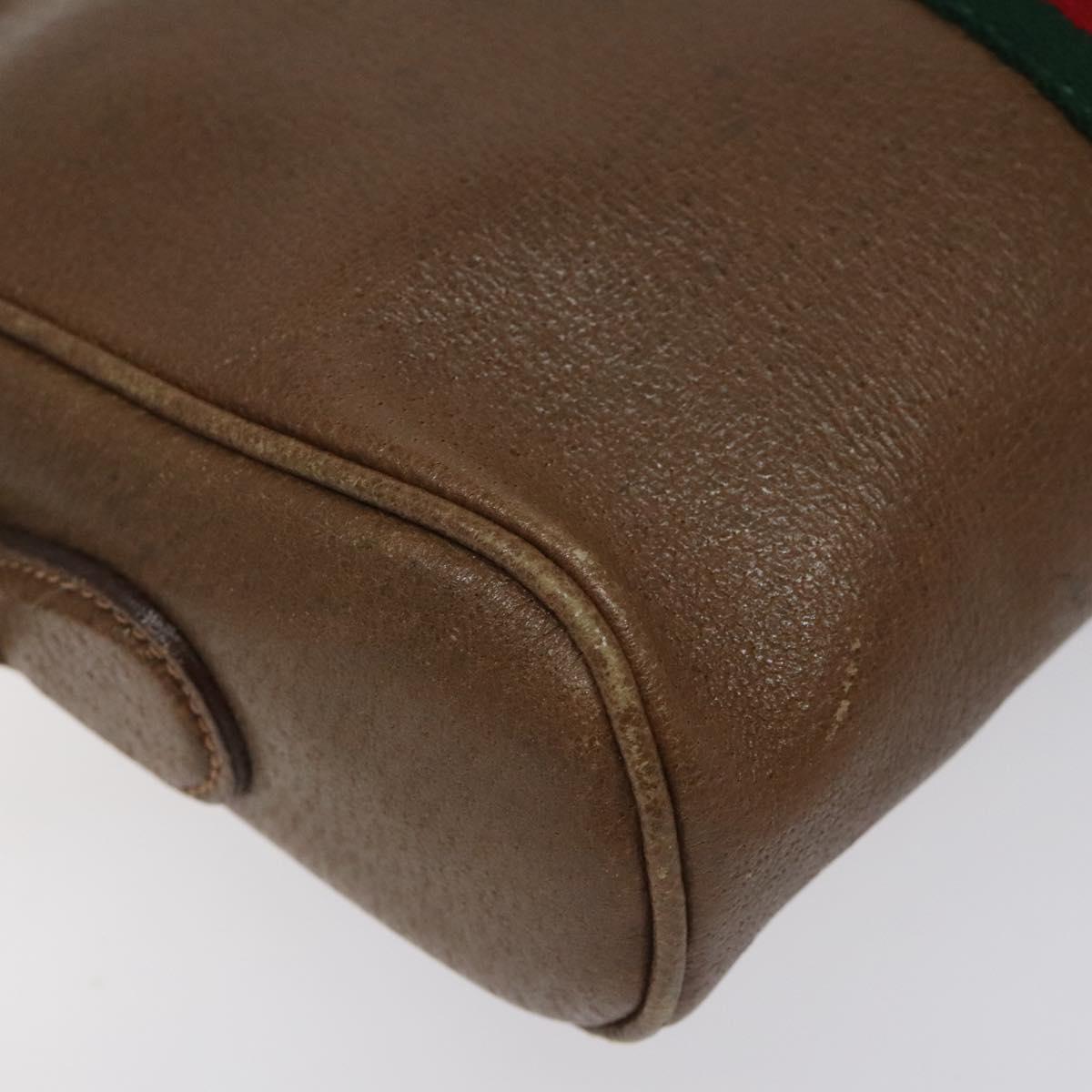 GUCCI Web Sherry Line Shoulder Bag Leather Brown Gold Auth 126169