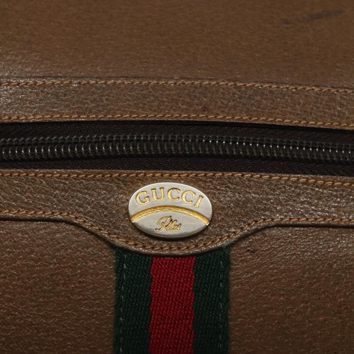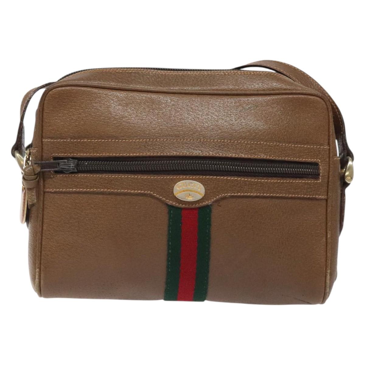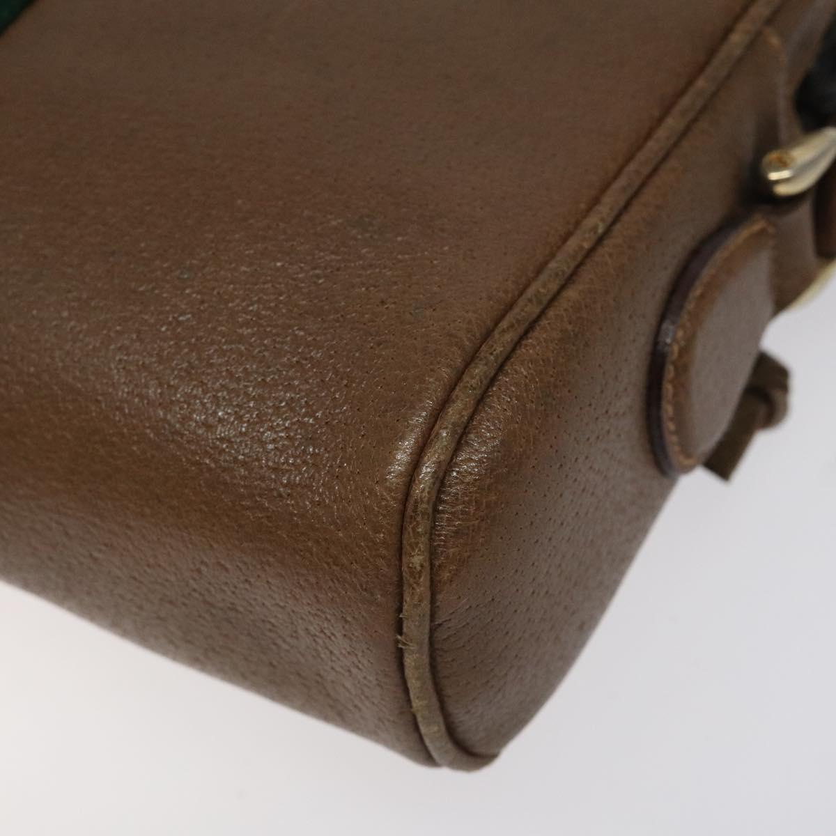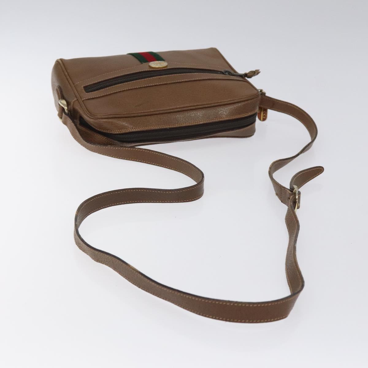GUCCI Web Sherry Line Shoulder Bag Leather Brown Gold Auth 126169