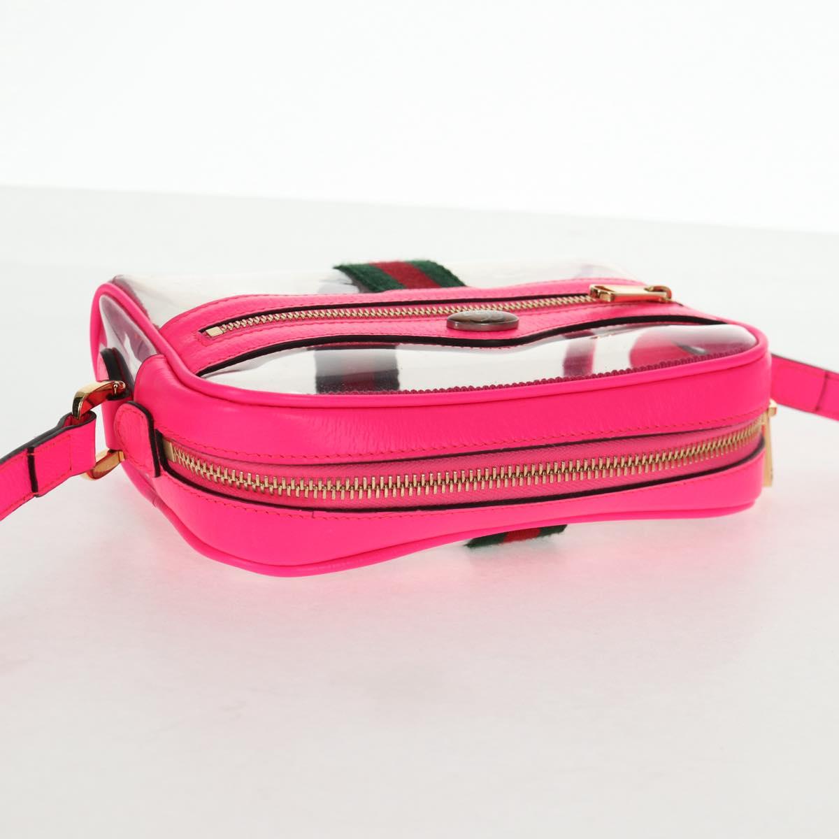 GUCCI Web Sherry Line Shoulder Bag Vinyl Clear Pink gold 517350 Auth 143984V