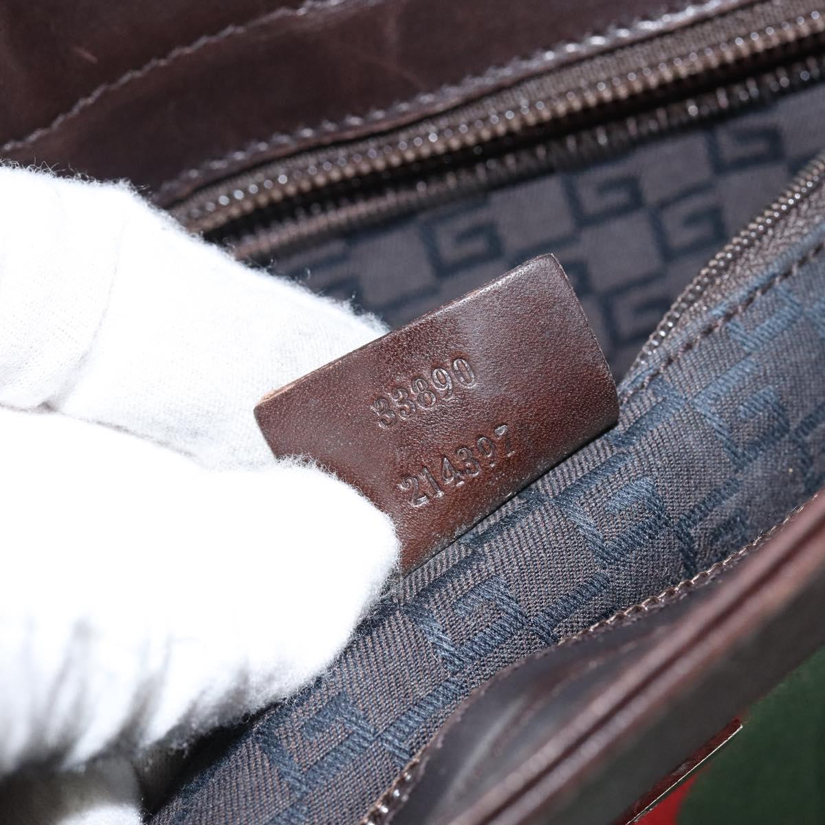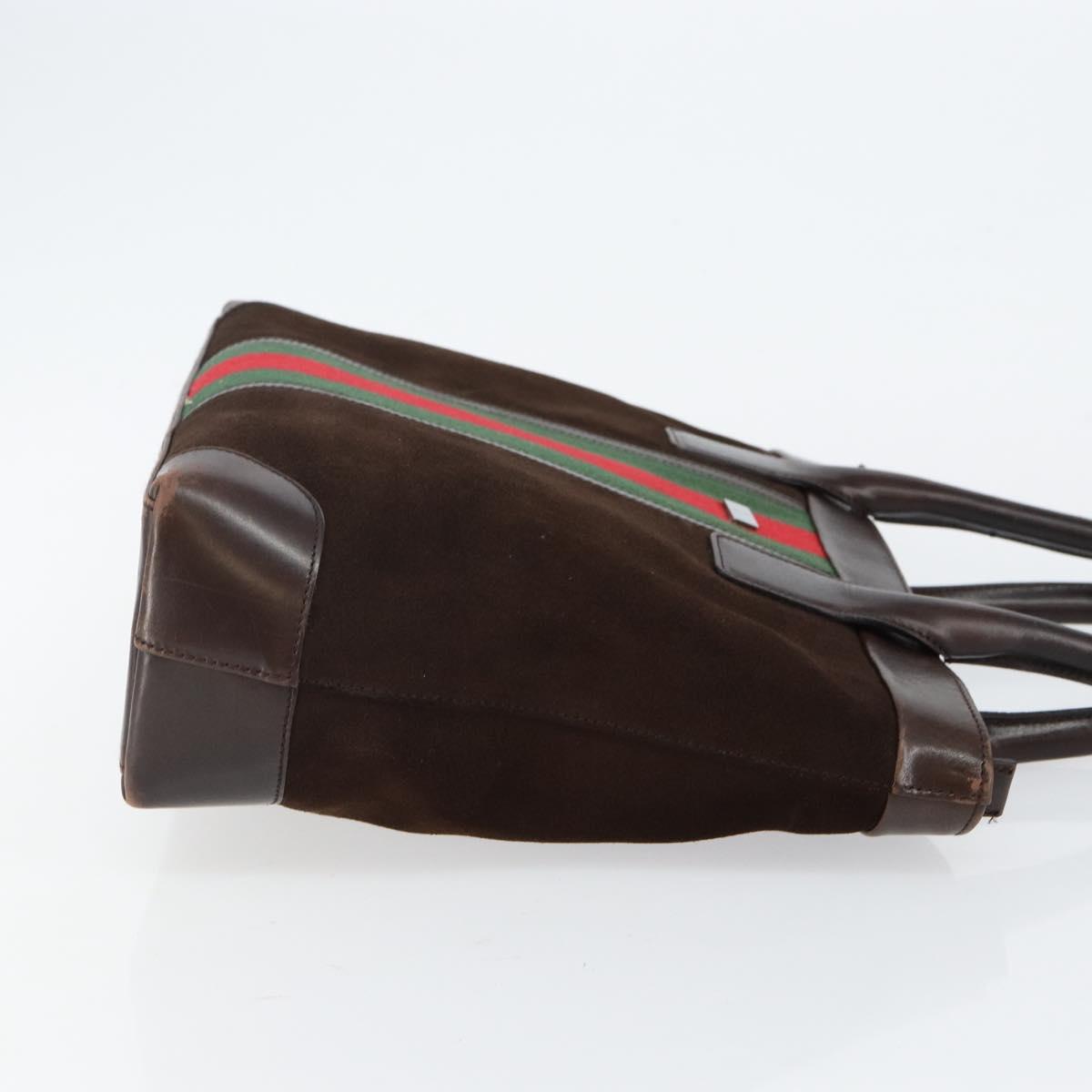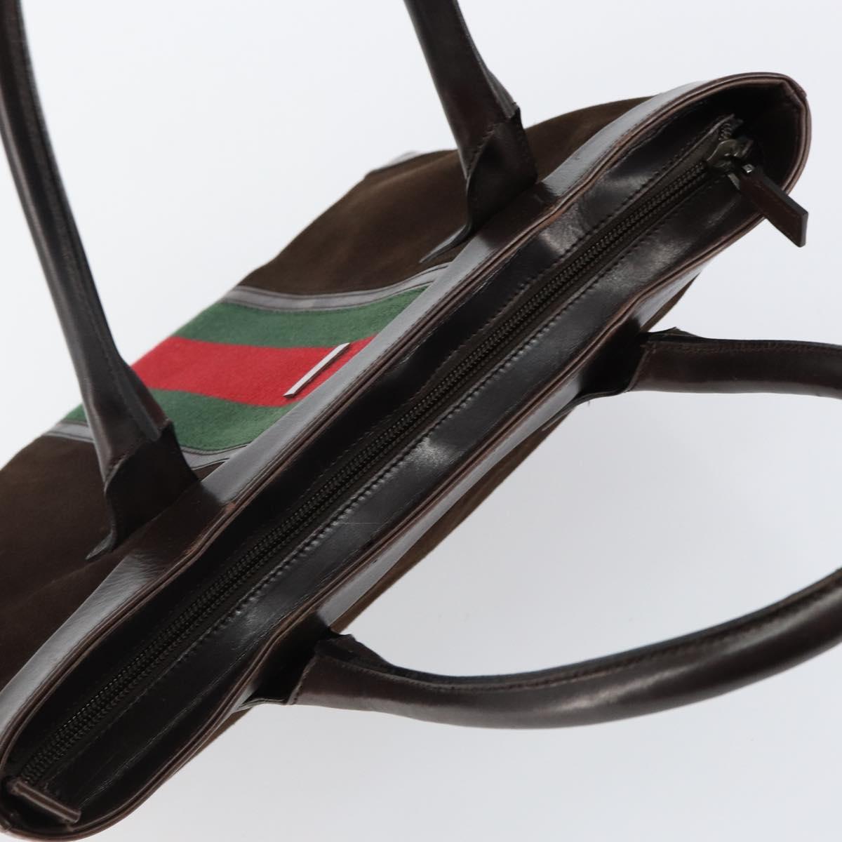 GUCCI Web Sherry Line Tote Bag Suede Leather Brown Red Green 33890 Auth gh807