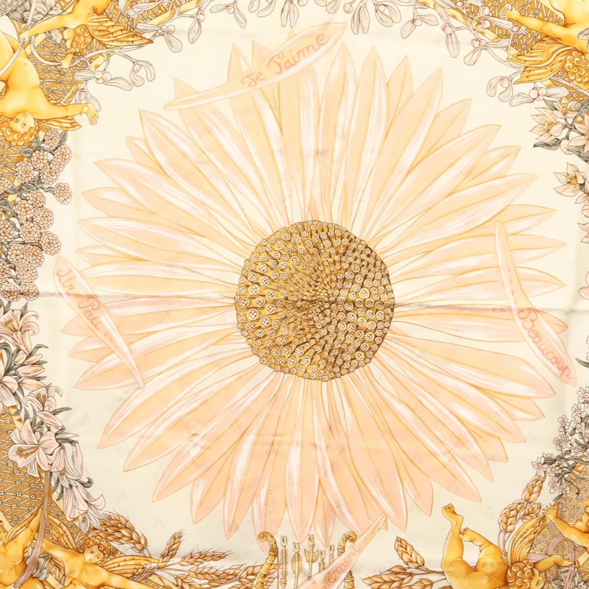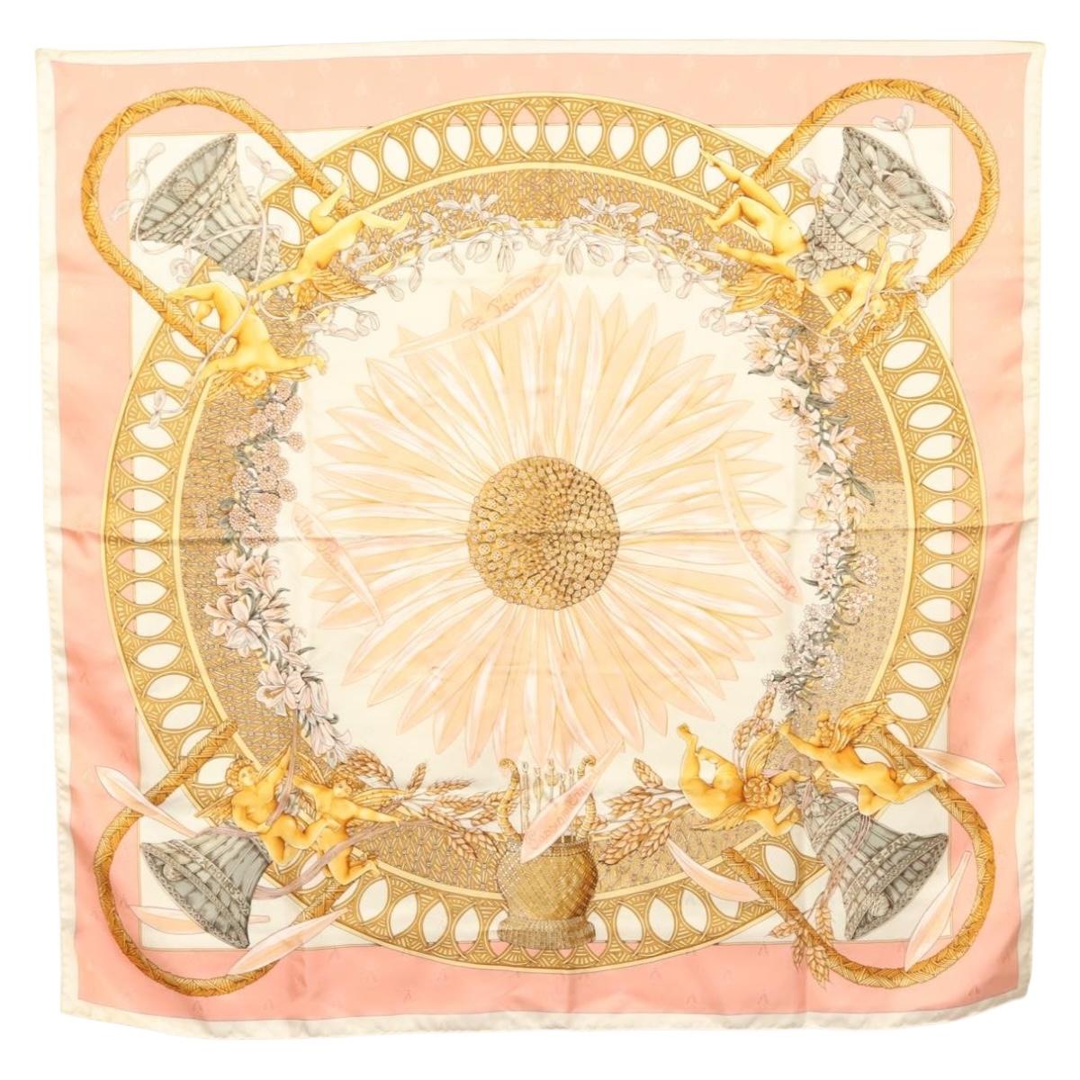 HERMES Carre 90 Scarf ""AMOURS"" Silk Pink Auth hk2958