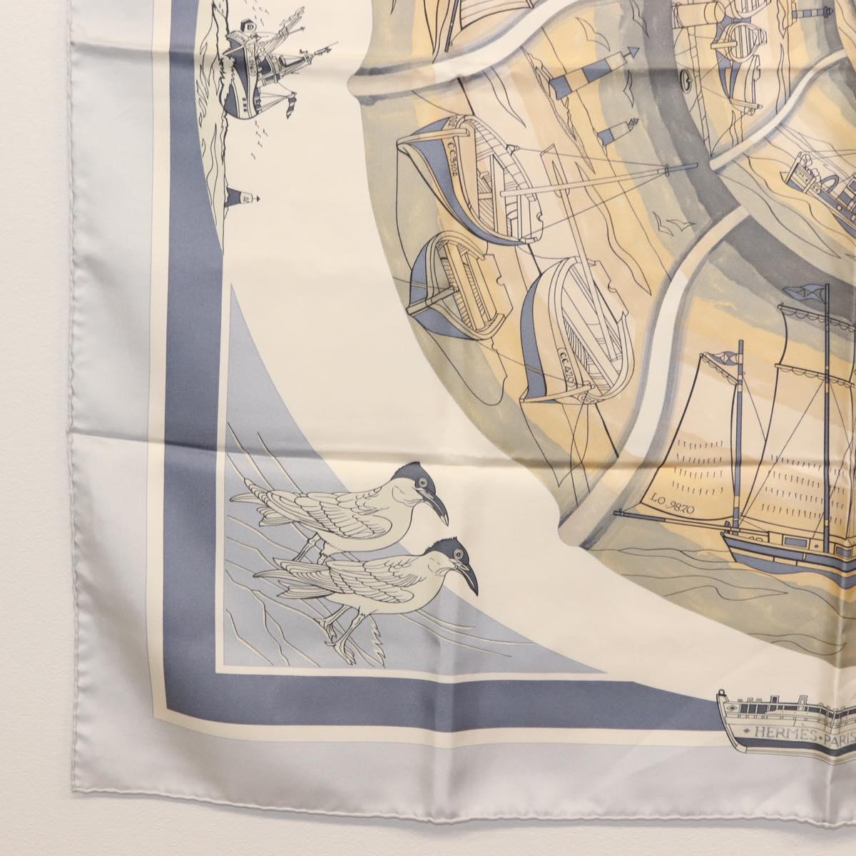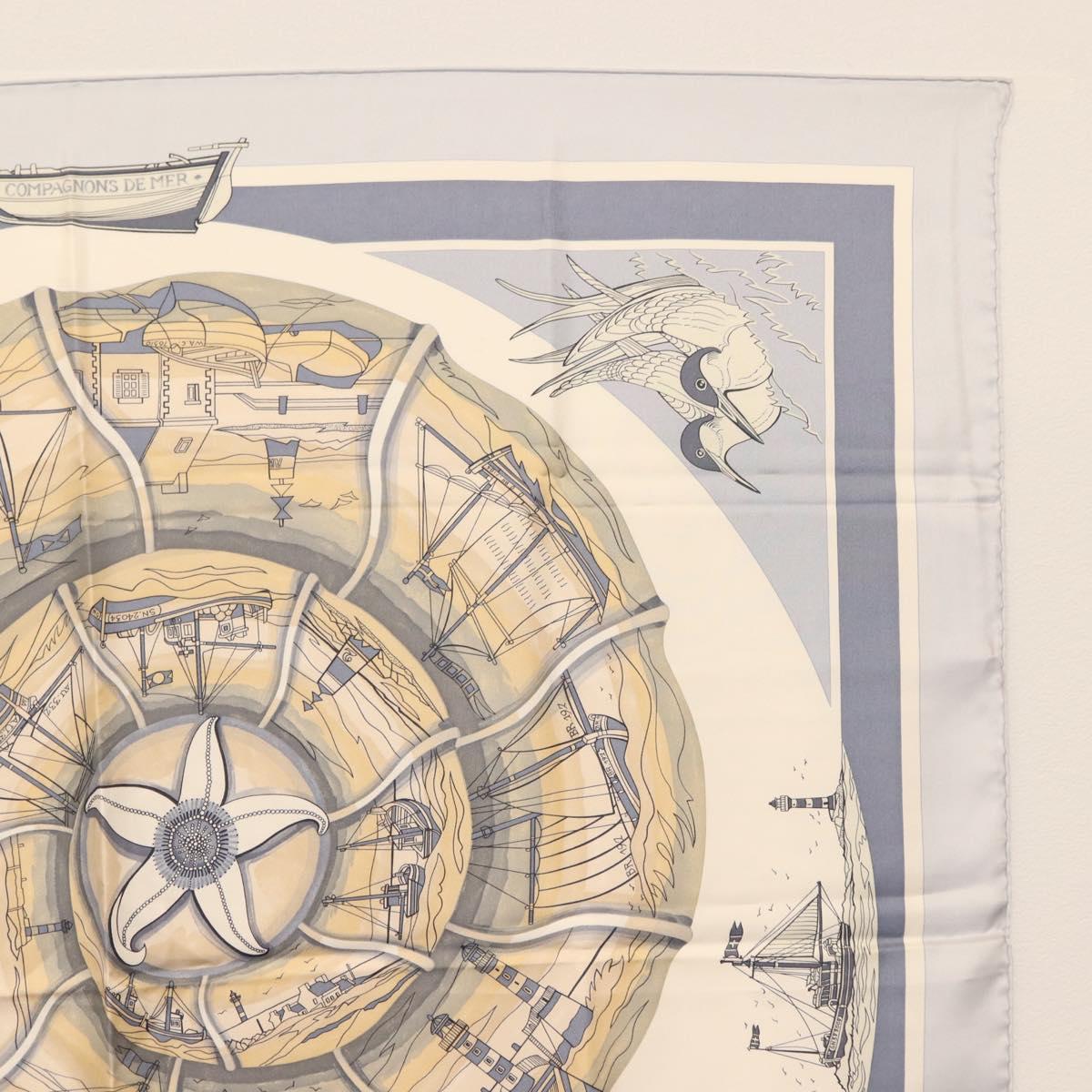 HERMES Carre 90 Scarf ""COMPAGNONS DE MER"" Silk Light Blue Auth SW1687