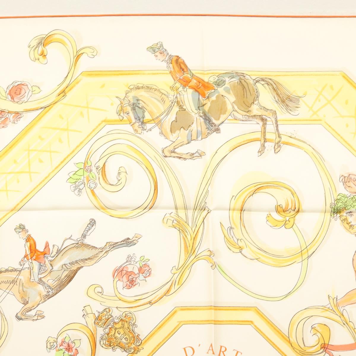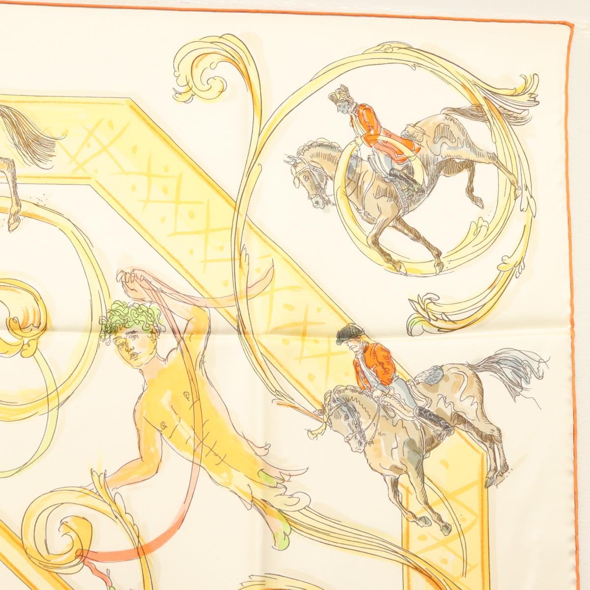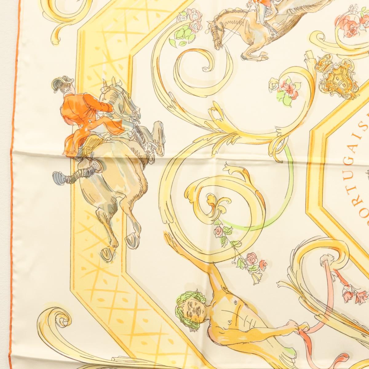 HERMES Carre 90 Scarf ""École Portugaise d'Art Équestre"" Silk Beige Auth am9006