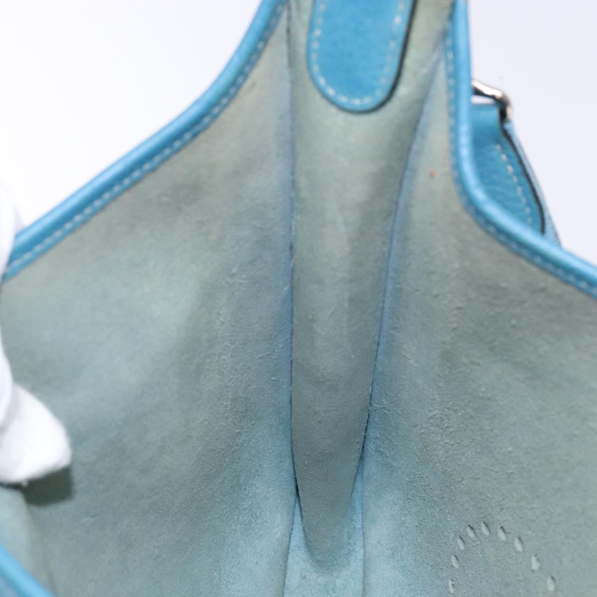 HERMES Evelyn PM Bag Taurillon Clemence Leather Blue Silver Auth bs28926