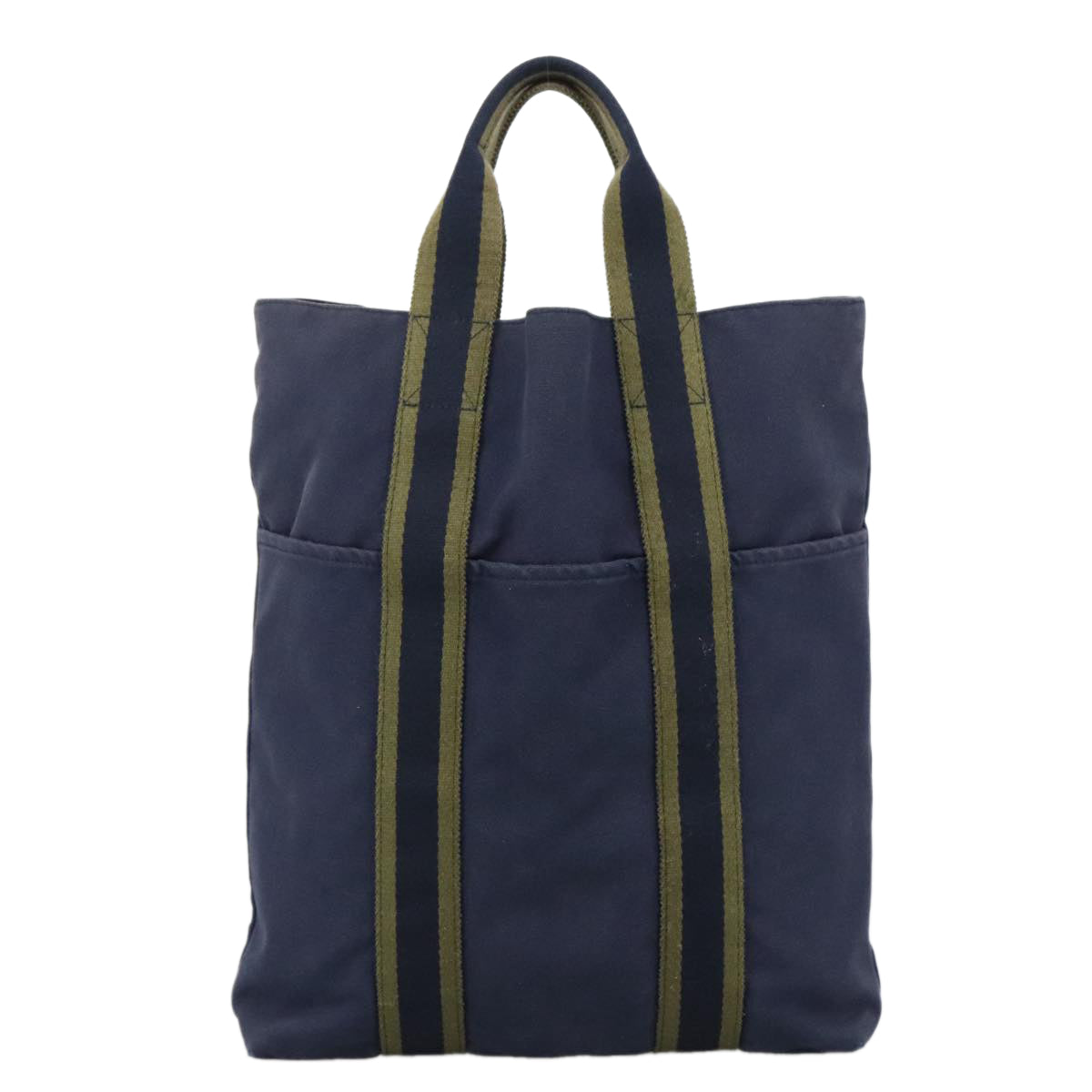 HERMES Fourre Tout cabas Tote Bag Canvas Navy Silver Auth ti2567