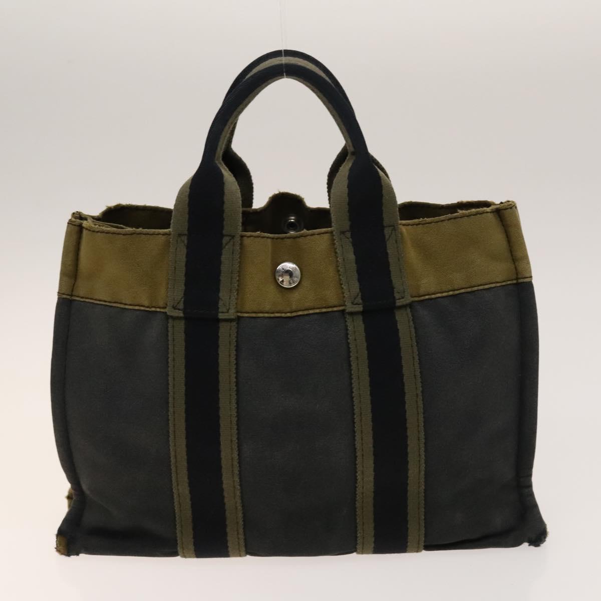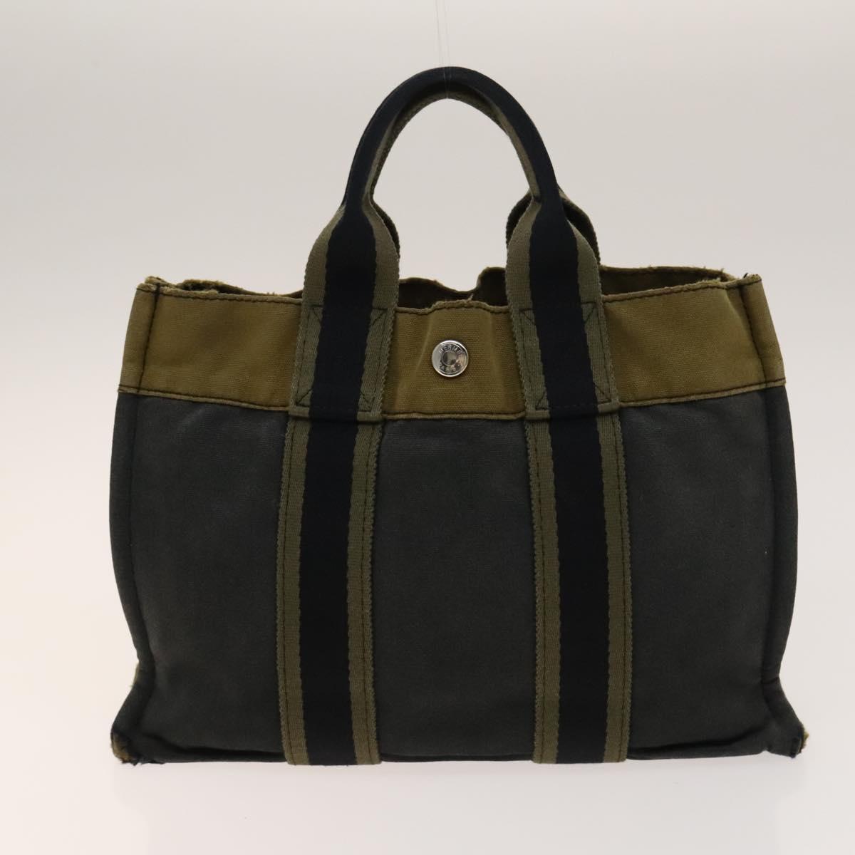 HERMES Fourre Tout Hand Bag Canvas 5Set Navy Black Red Auth ti3420