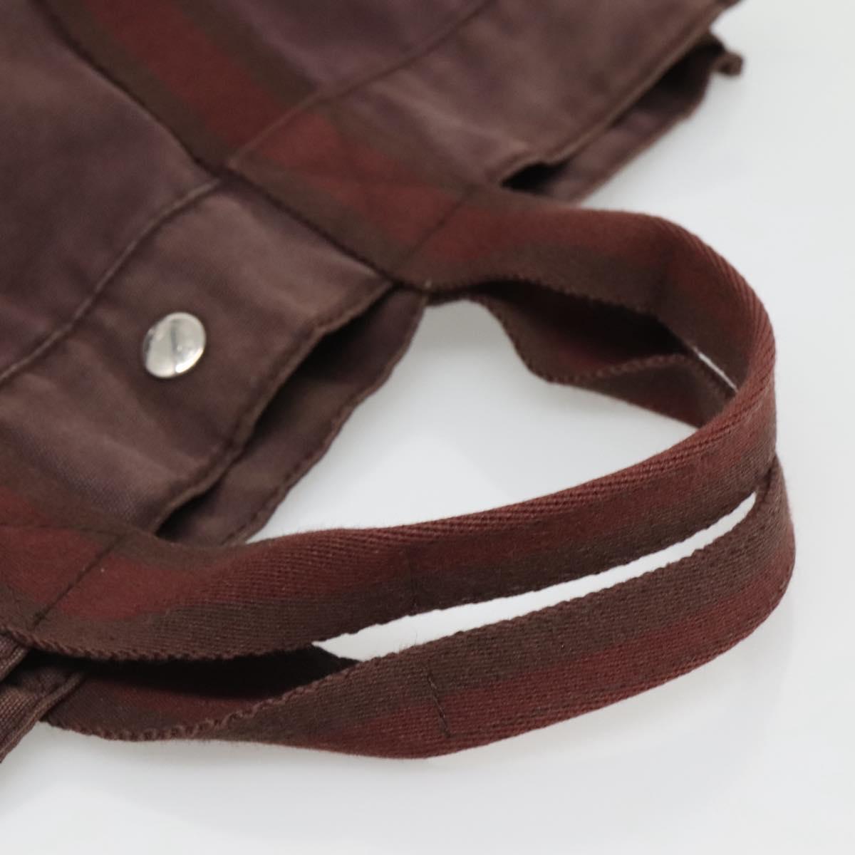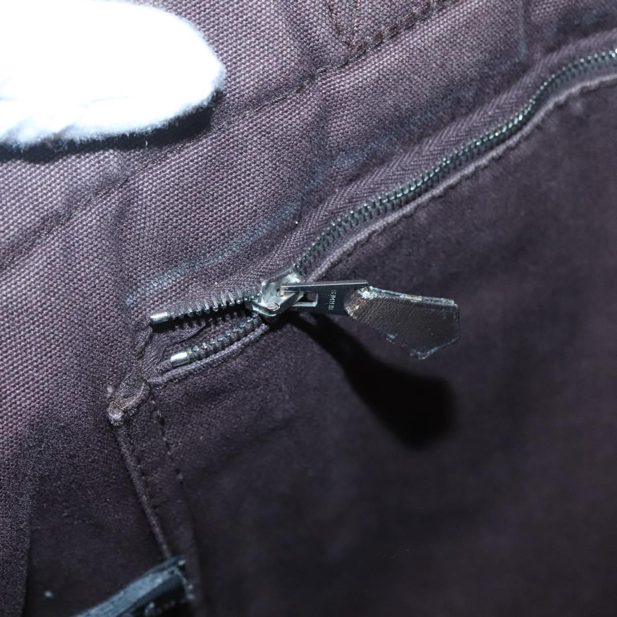 HERMES Fourre Tout MM Hand Bag Canvas Leather Brown Silver Auth bs29205