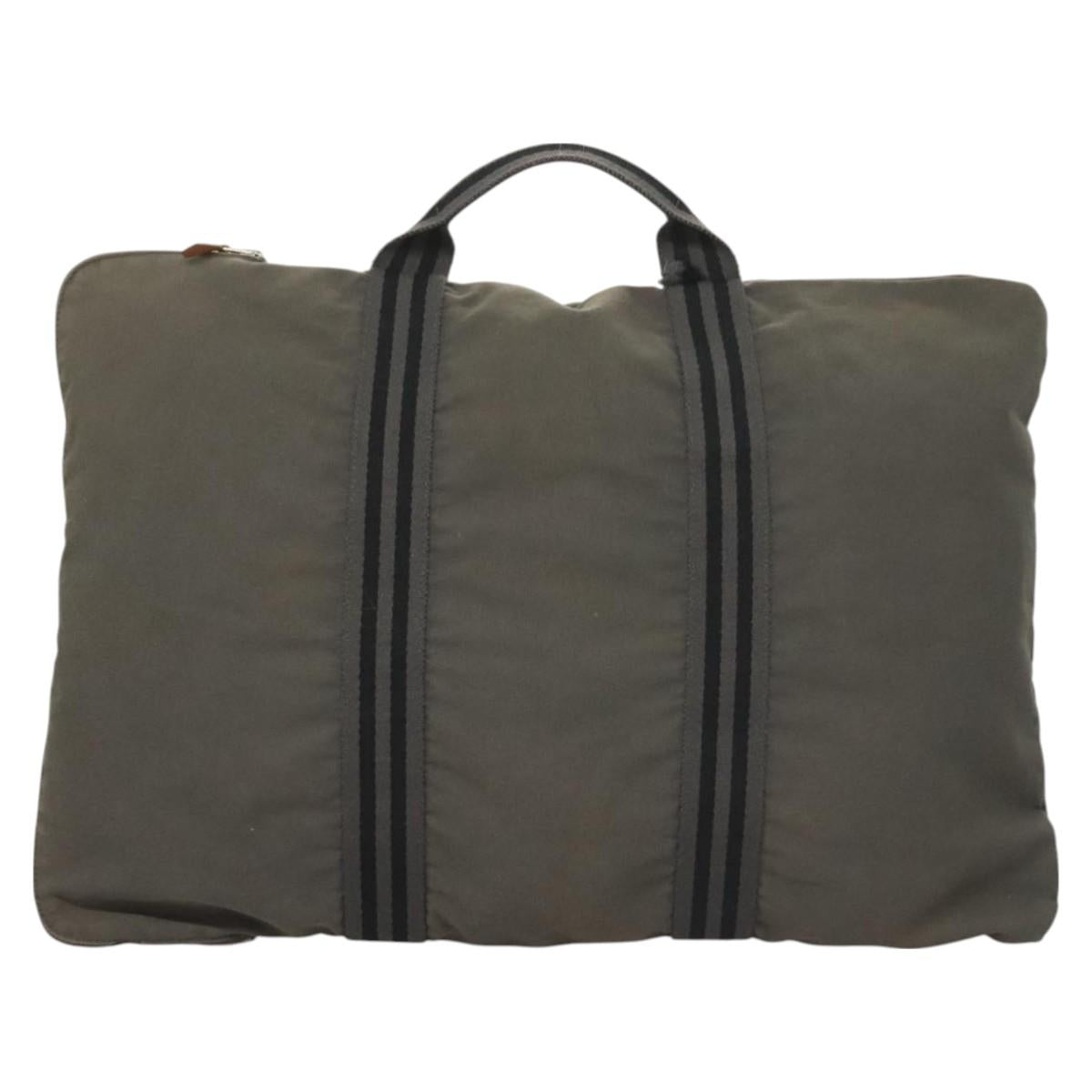 HERMES Fourre Tout Porte Documents Business Bag Canvas Gray Silver Auth bs27029