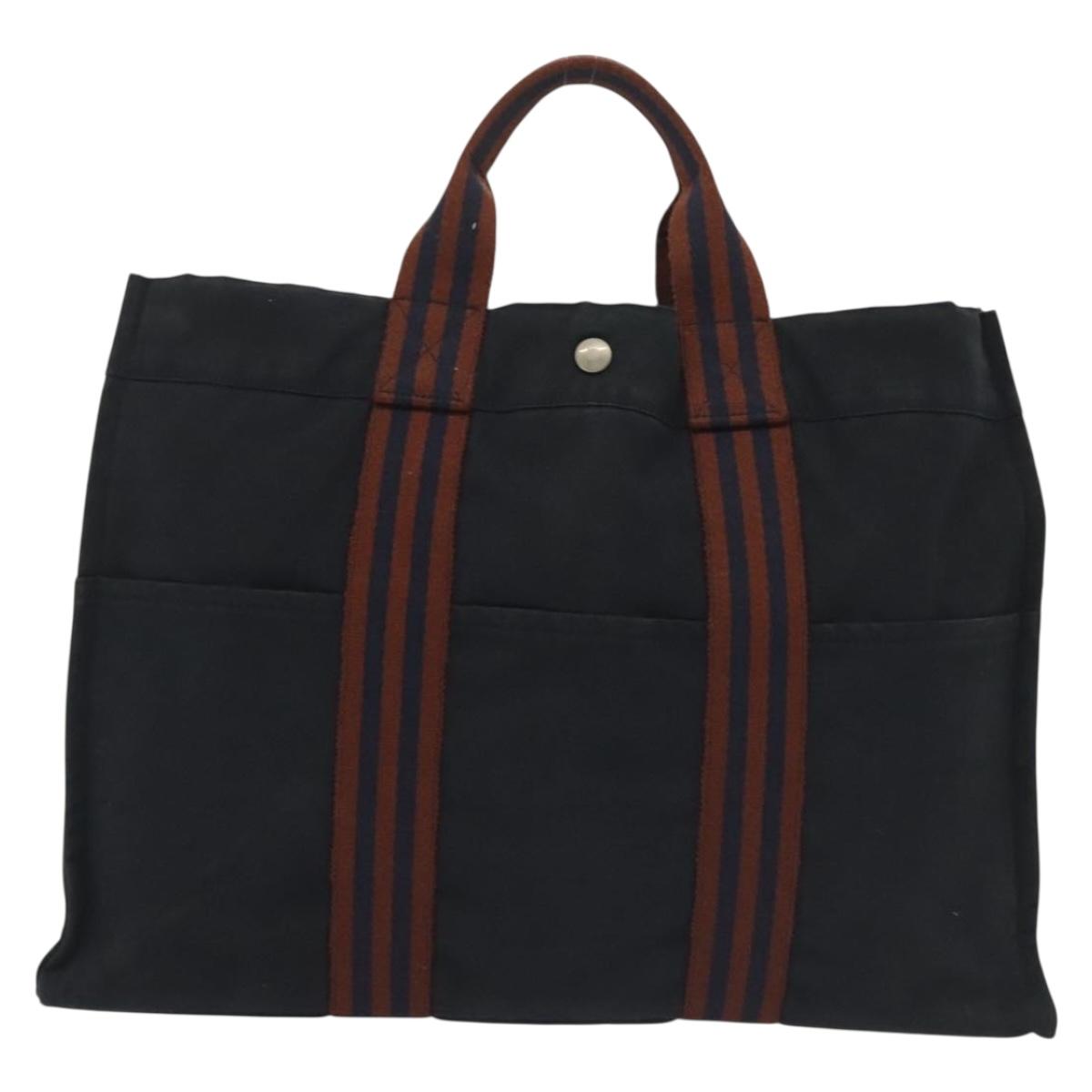 HERMES Fourre Tout MM Hand Bag Canvas Navy Auth 135189