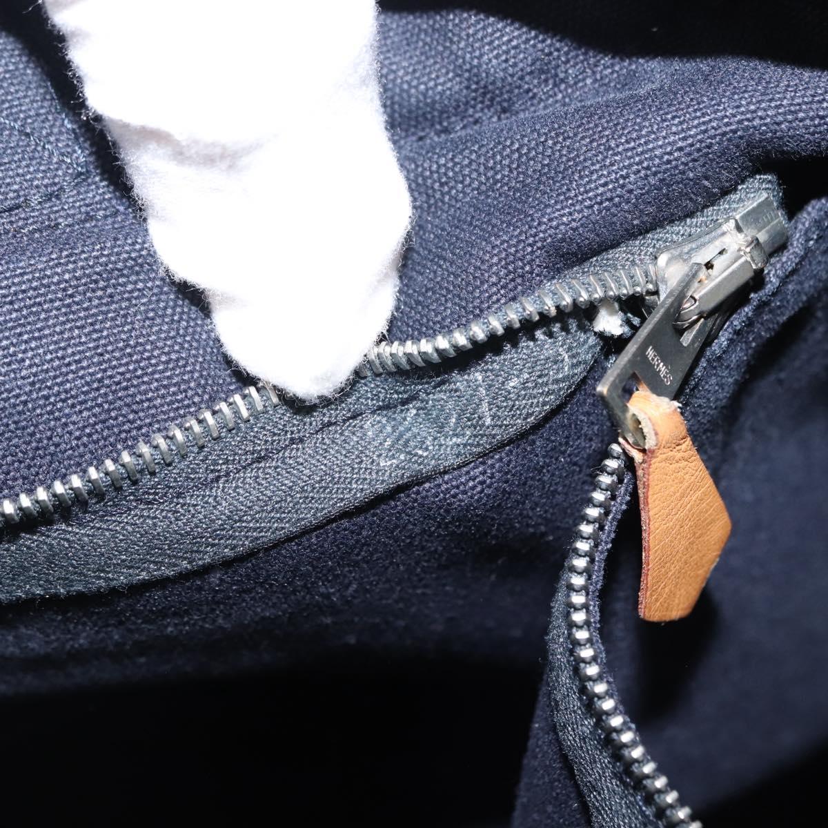 HERMES Fourre ToutMM Hand Bag Canvas Navy Brown Auth 147150