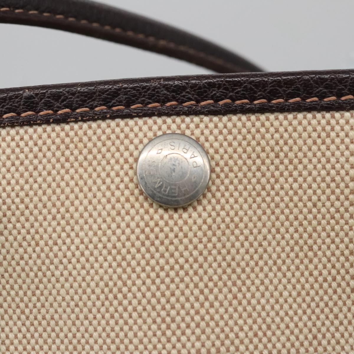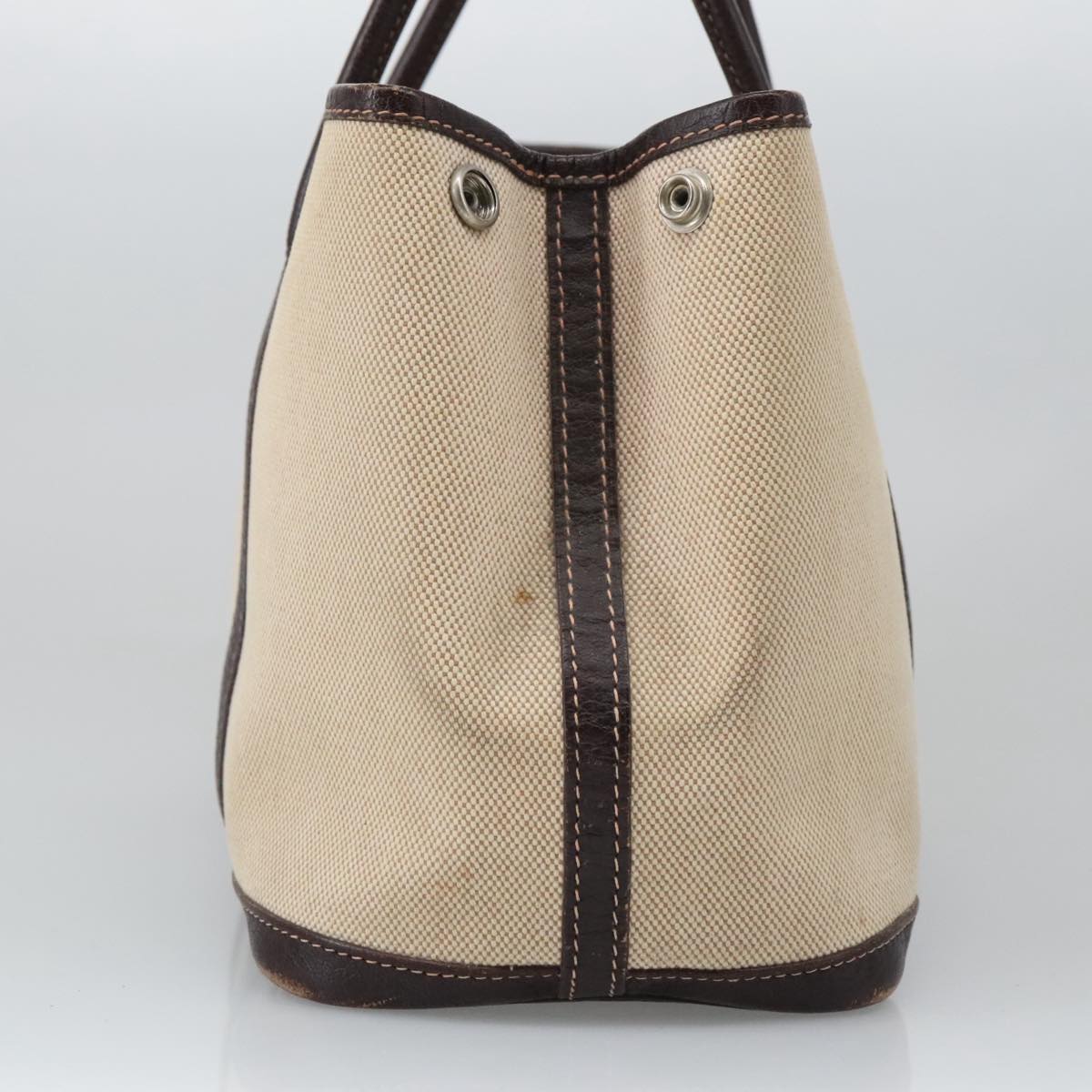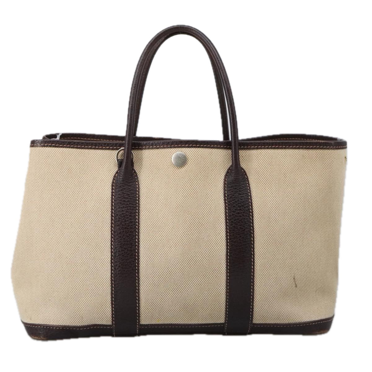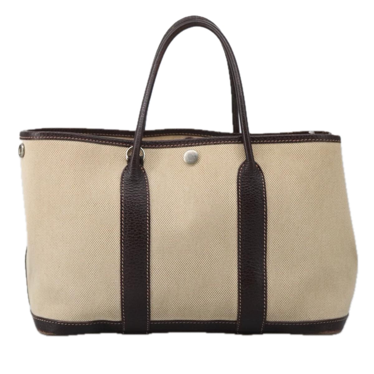 HERMES Garden Party Hand Bag Canvas Leather Brown Beige Auth 35865