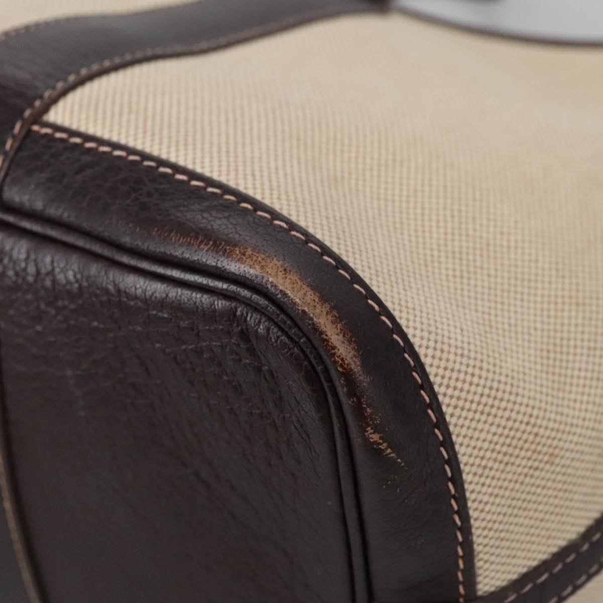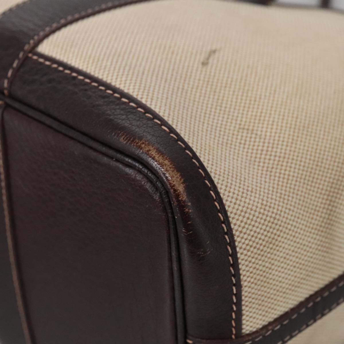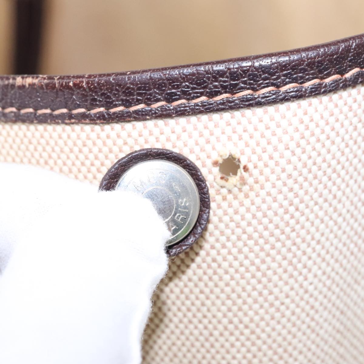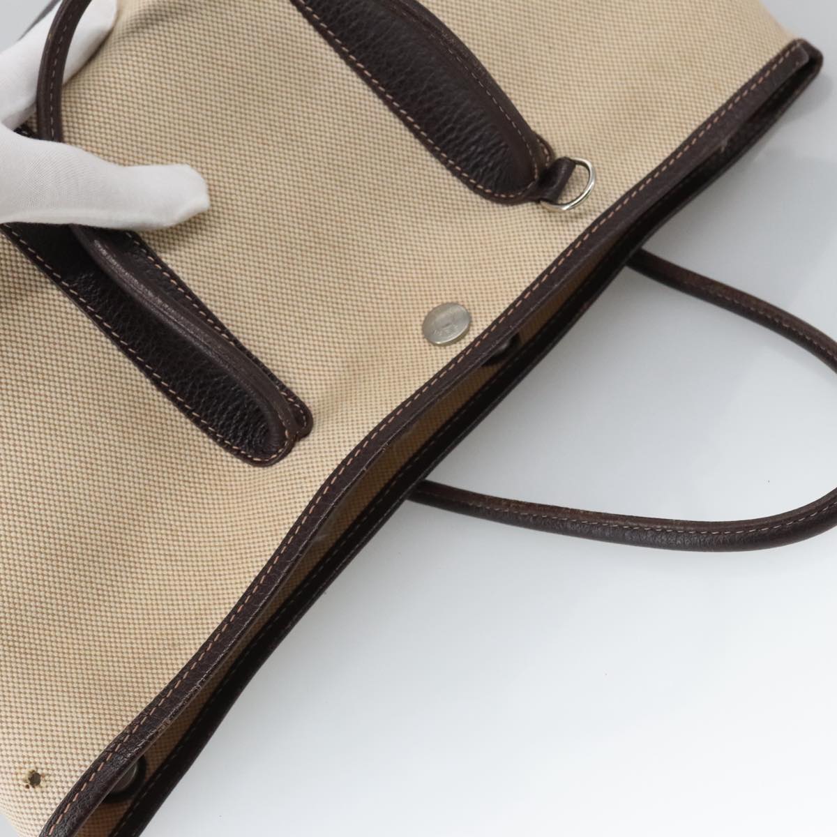 HERMES Garden Party Hand Bag Canvas Leather Brown Beige Auth 35865