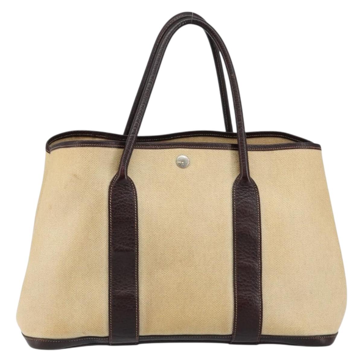 HERMES Garden Party MM Tote Bag Coated Canvas Beige Silver Auth bs29742