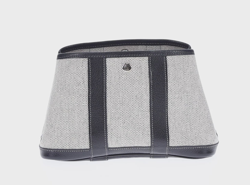 HERMES Garden Party Pouch Canvas Gray Silver Auth 147267SM