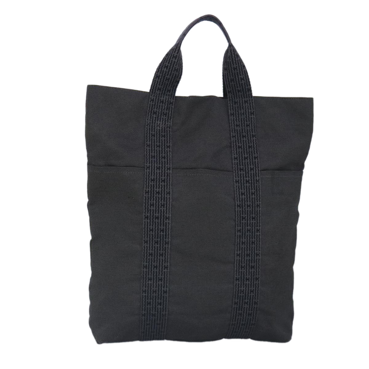 HERMES Her Line Cabas Tote Bag Nylon Gray Silver Auth bs19750