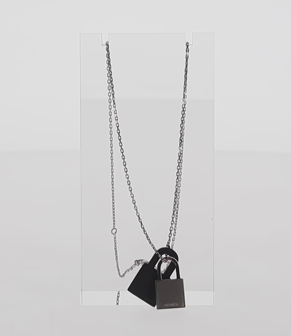 HERMES Orchestral PM Necklace Metal Leather Silver Black Auth 130685M