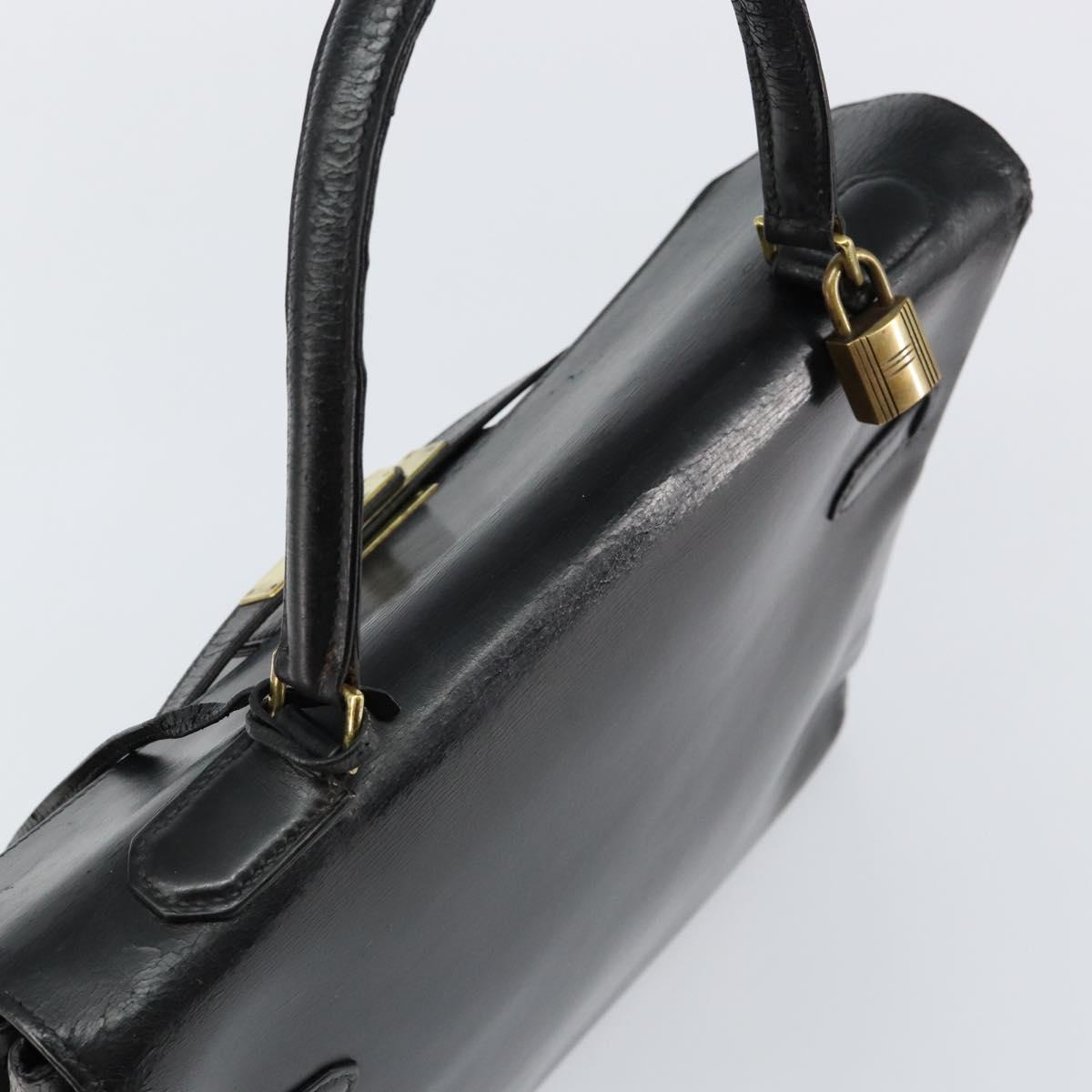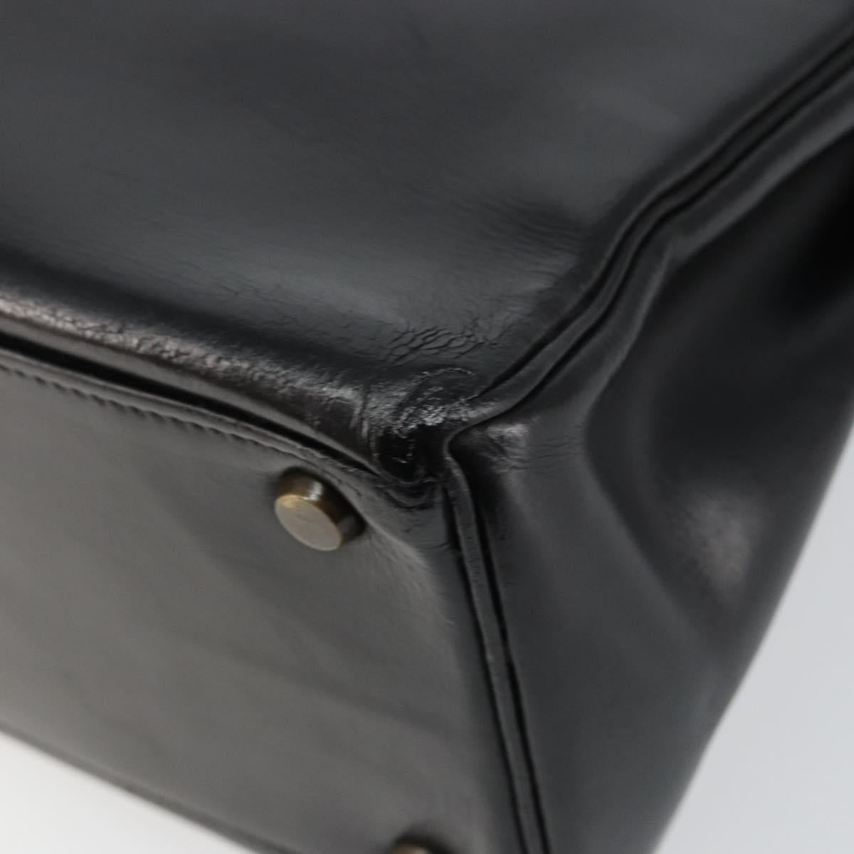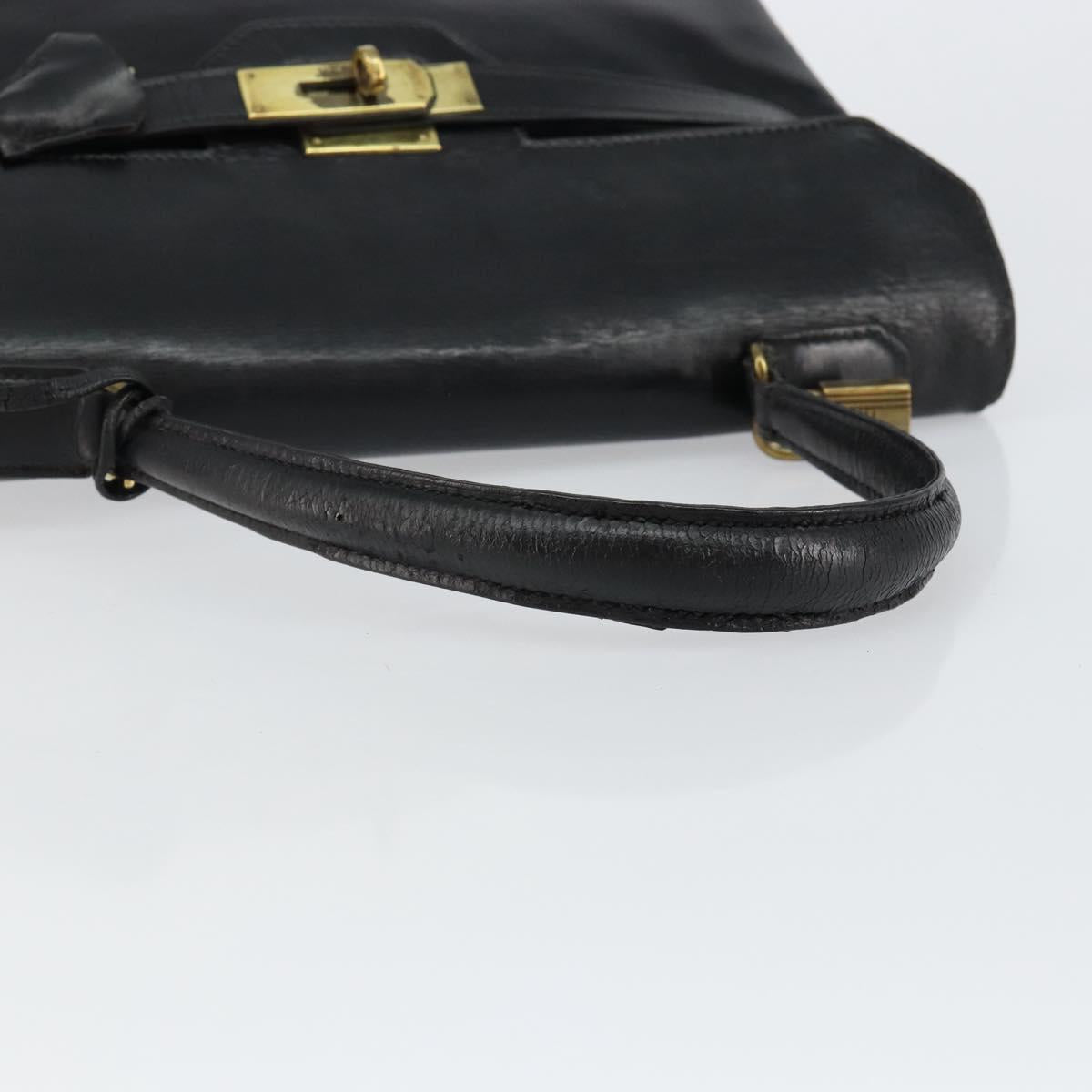 HERMES Sac Acroa Hand Bag Leather Black Gold Auth bs29996