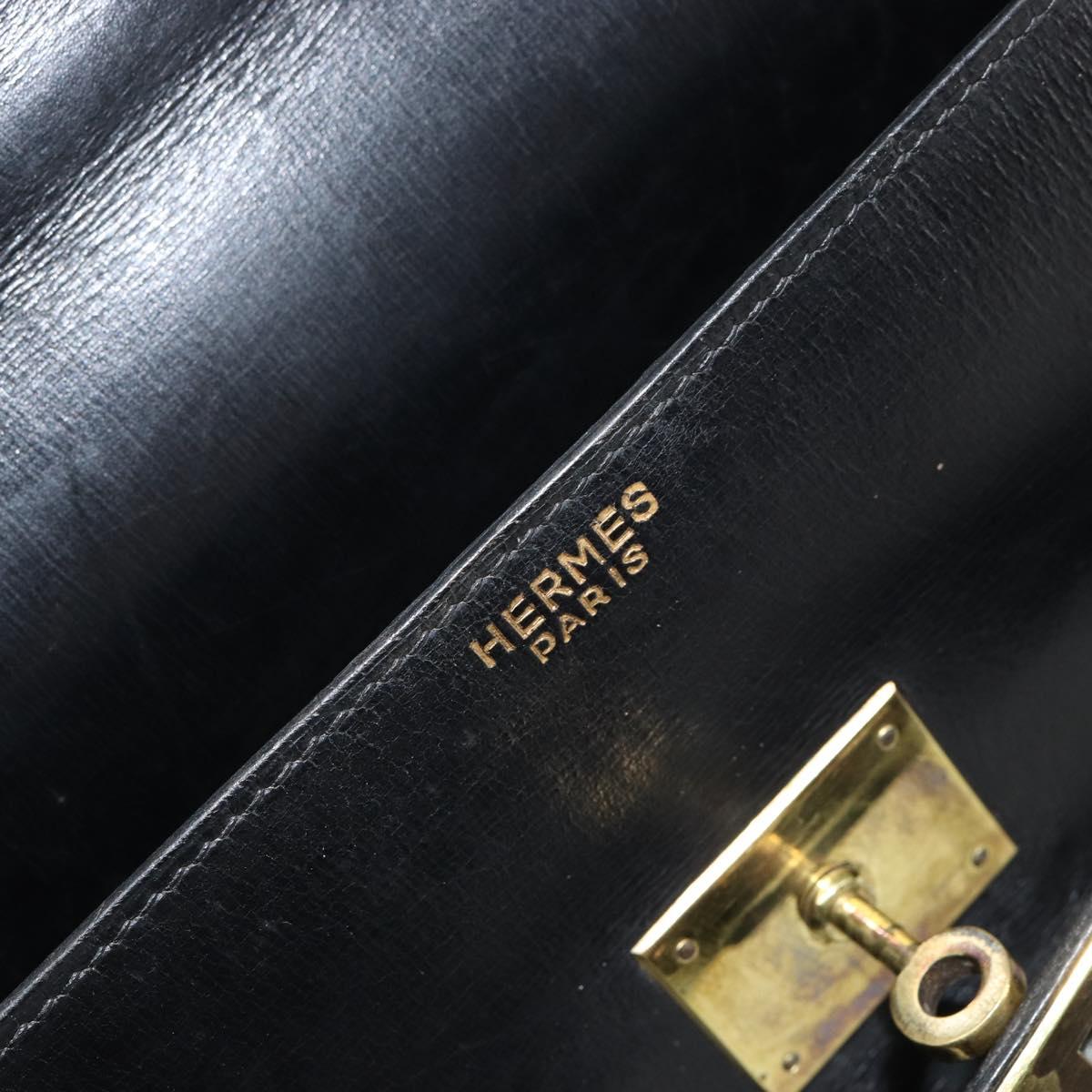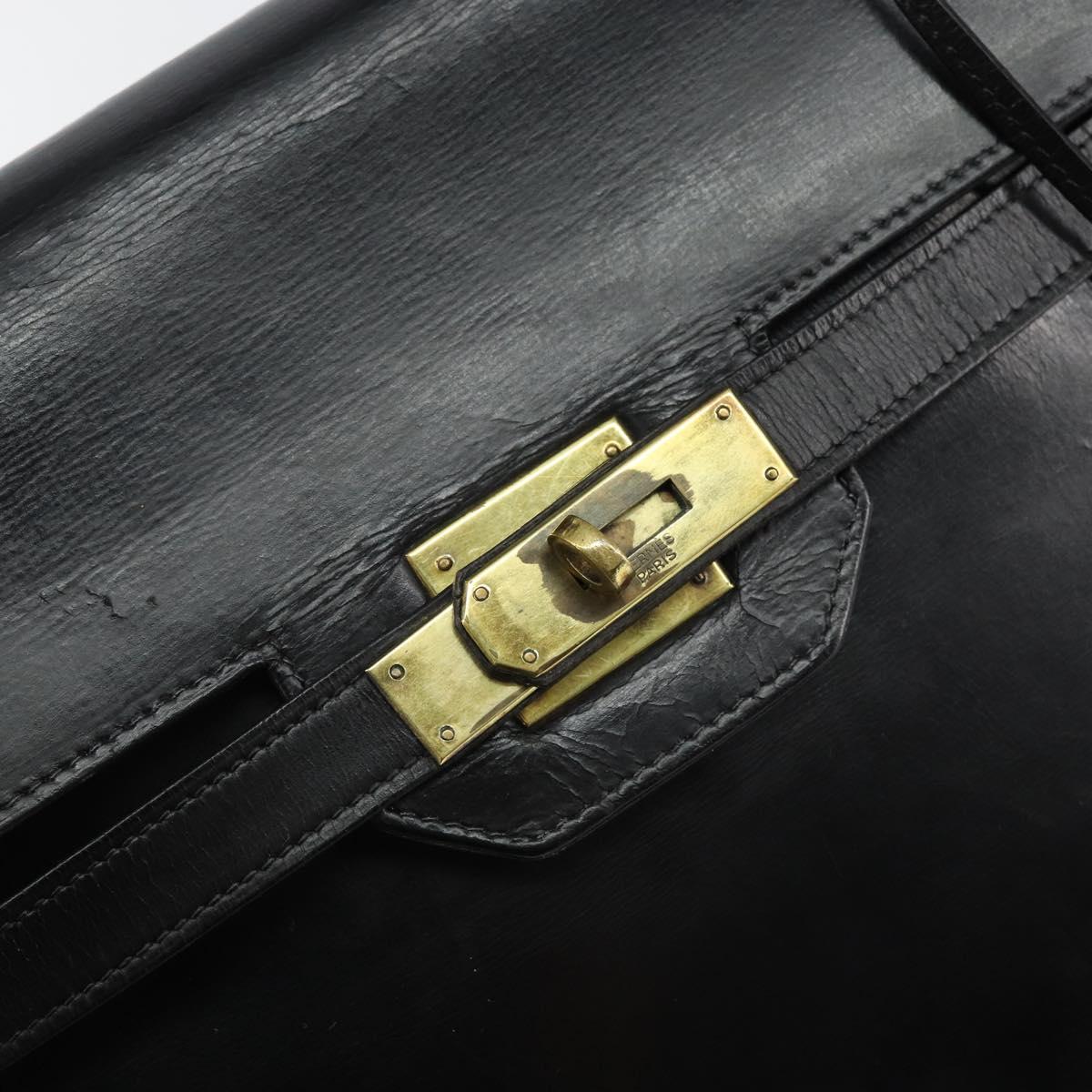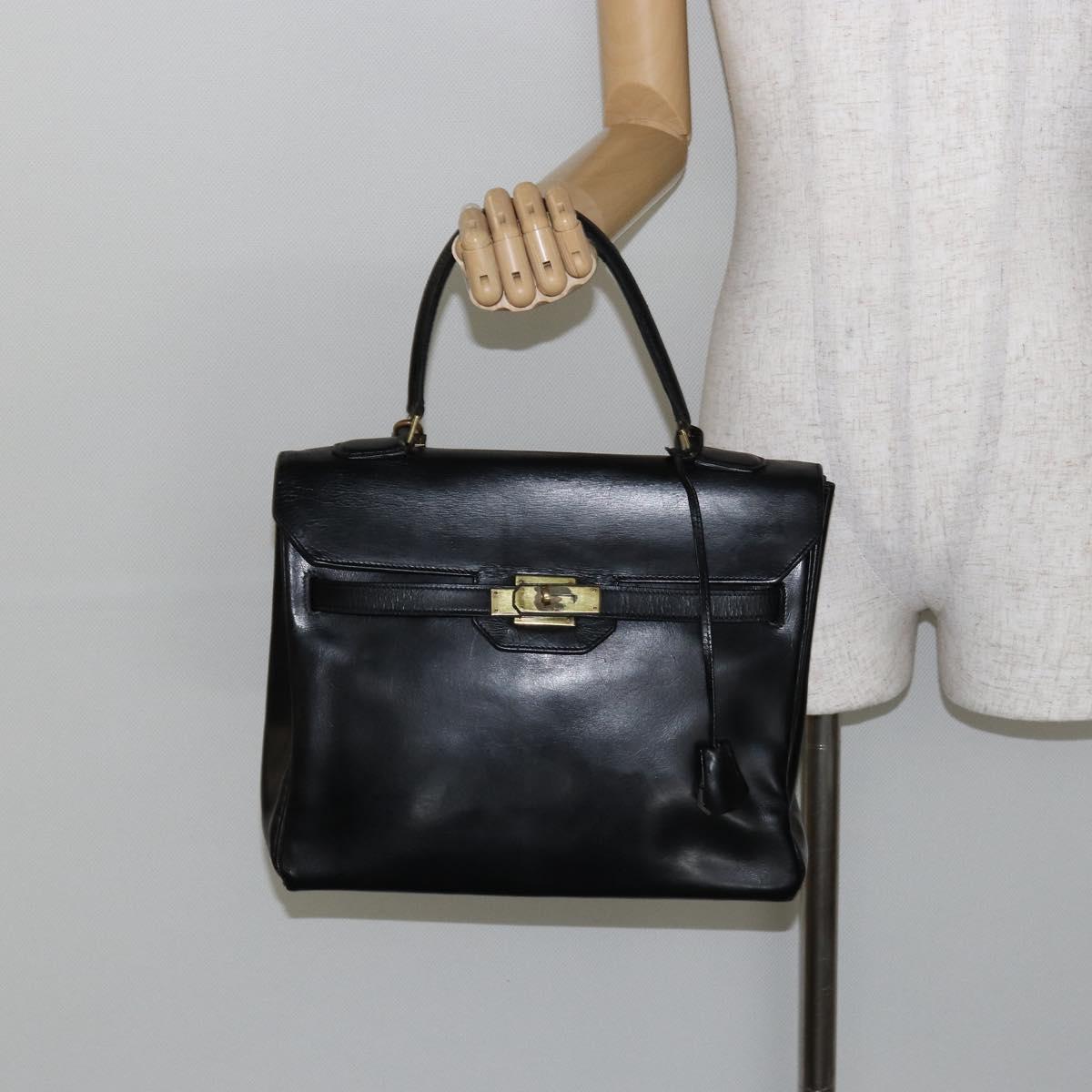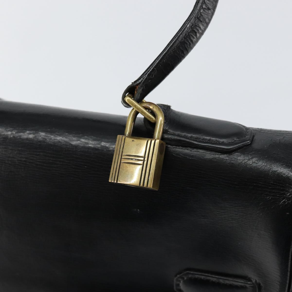 HERMES Sac Acroa Hand Bag Leather Black Gold Auth bs29996