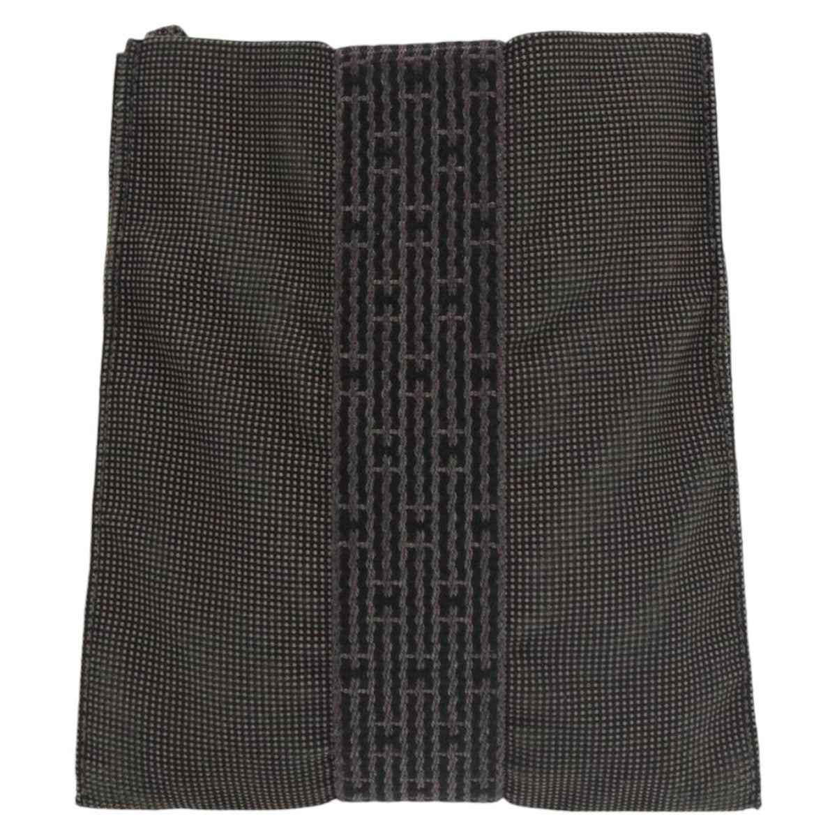 HERMES Shoulder Pouch Canvas Gray Auth 93263