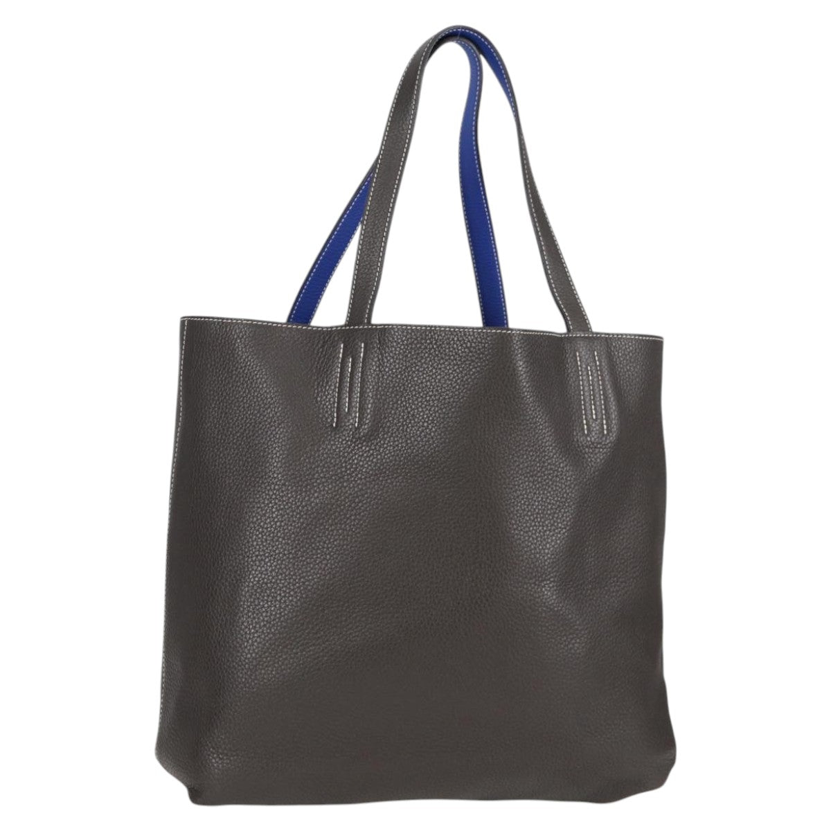 HERMES Double Sens 45 2013 □Q Tote Bag Etain Blue Electric Taurillon Clemence