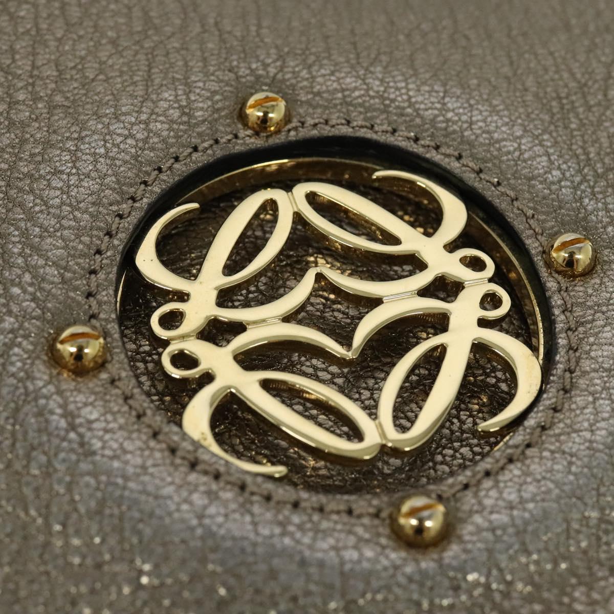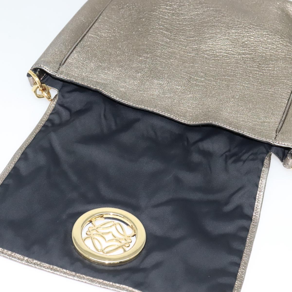 LOEWE Anagram Shoulder Bag Leather Gold Tone Gold Auth yk19406
