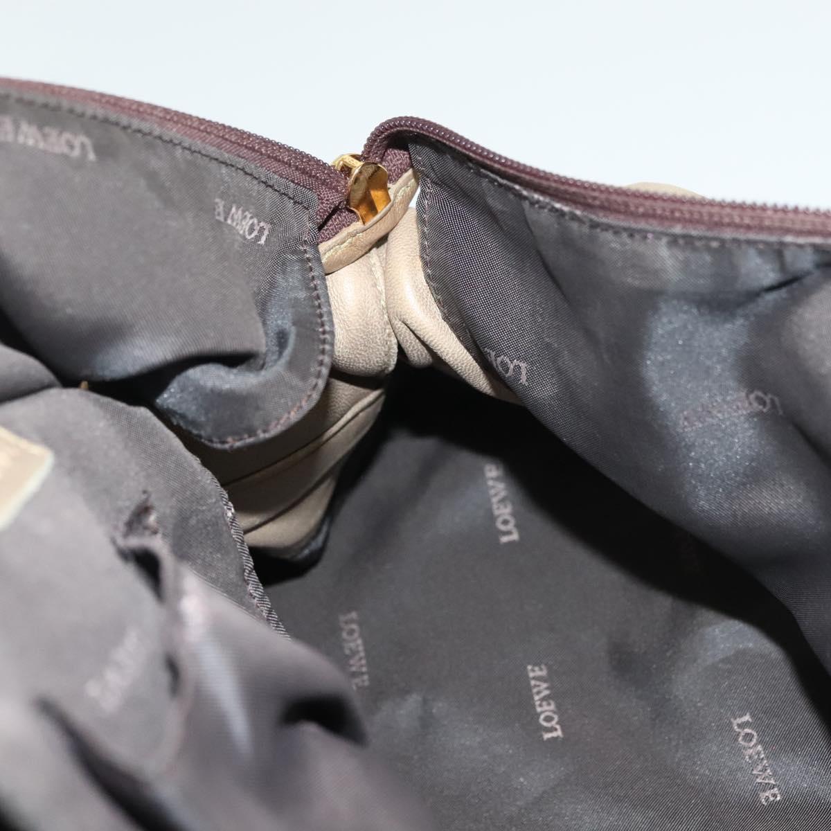 LOEWE Nappa Aire Hand Bag Leather Beige Gold Auth 140795